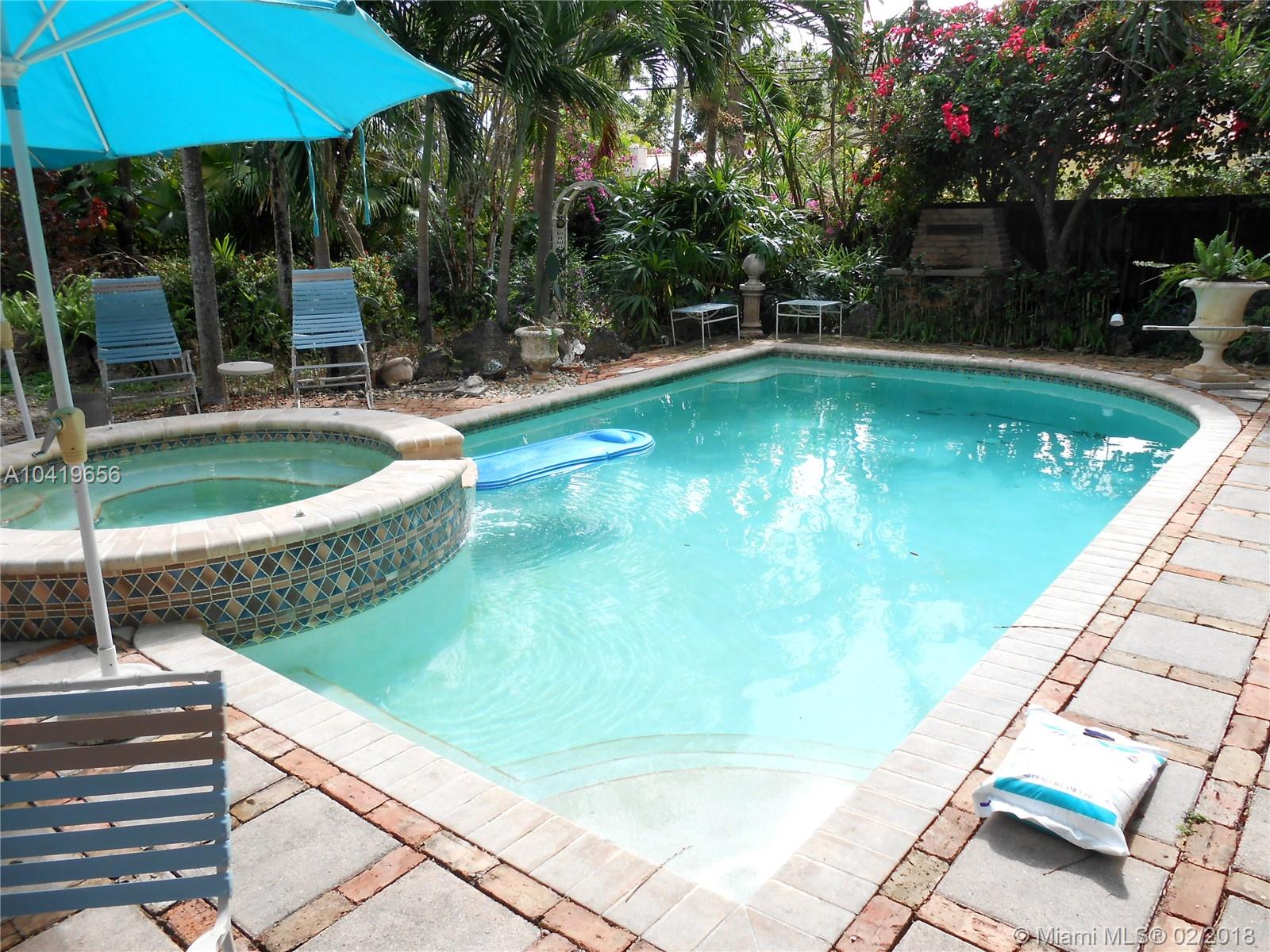 CHARMING 1930'S MIAMI SHORES HOME ON QUIET RESIDENTIAL STREET. LIVING ROOM FEATURES WOOD-BURNING FIREPLACE. ORIGINAL HARDWOOD FLOORS. POURED CONCRETE COUNTERS & REAL WOOD CABINETS IN KITCHEN. 5 BURNER GAS STOVE, HUGE FAMILY ROOM WITH BATHROOM & CLOSET (COULD BE 3RD BEDROOM.) PRIVATE FENCED BACKYARD WITH POOL & BUILT-IN SPA. HURRICANE IMPACT WINDOWS/DOORS THROUGHOUT. NON-EVACUATION ZONE IN CAT. 5 HURRICANE. ATTACHED GARAGE. CALL FOR APPOINTMENT TO SHOW.