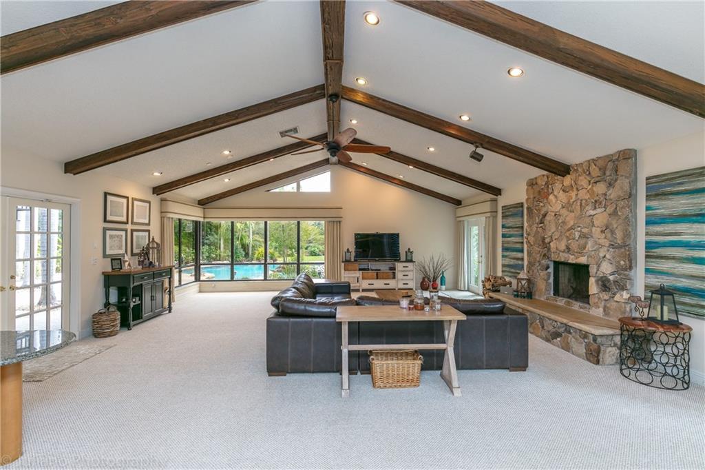 Custom built estate home on 1.17 acres! Private tropical paradise with large pool, gazebo, expansive paver patio. Home features 2 master suites, plus nanny suite. All secondary bedrooms have on-suite baths & walk in closets. Large family room w/ vaulted ceilings & wood burning fireplace, oversized open concept kitchen w/ SubZero refrigerator & freezer, an entertainers delight! Brand new roof in 2015, new 4 zone A/C 2014. Travertine floors, 2 laundry/utility rooms & Sauna. 3 car garage & circular drive.