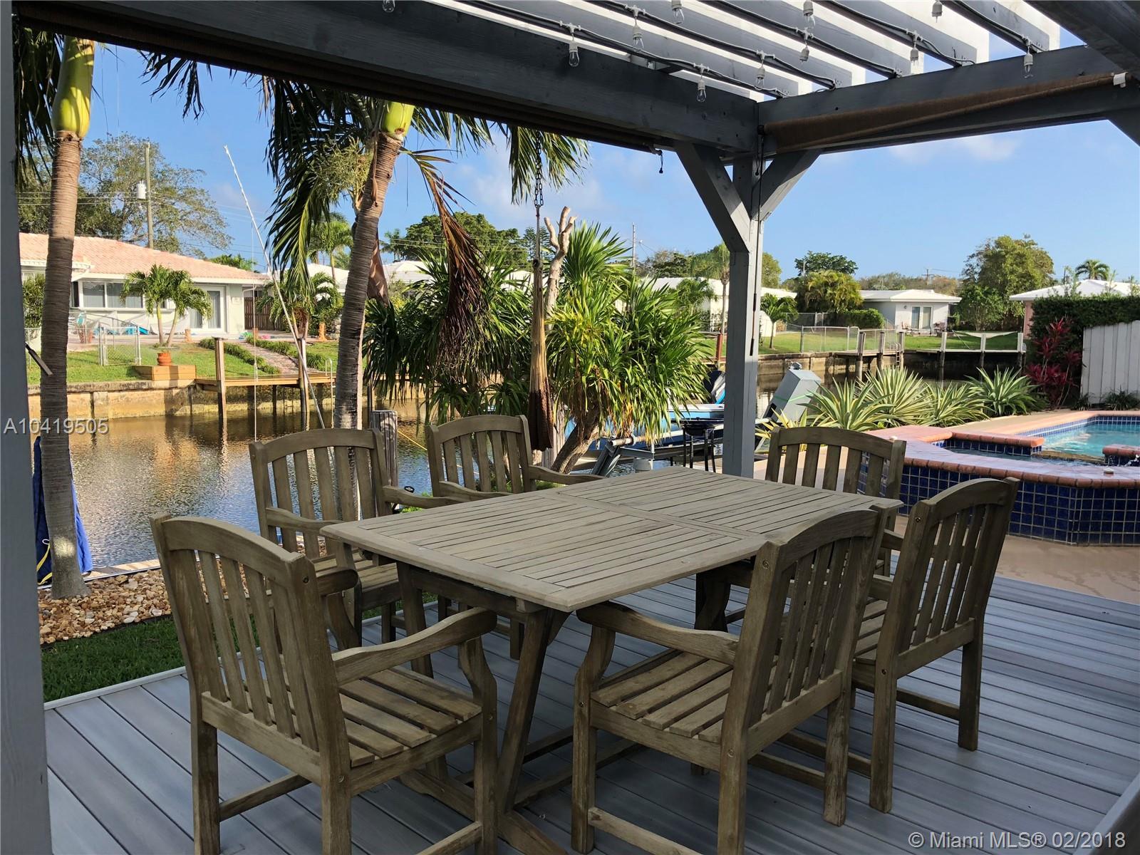 Price drop below appraisal to sell immediately! Don’t miss this spectacularly renovated 3 bedroom 2 bath waterfront home in Imperial point. Featuring new AC with warranty, new electrical panel, 24” porcelain tile throughout, custom wood kitchen cabinets and high-end finishes. This home has an huge 75 foot dock w/ power & Boat Lift. The custom pergola with seating for 12 overlooks a beautifully landscaped pool with cascading spa and canal. This house is turn key and ready to move in. Surrounded by excellent schools, shopping and ocean access. Freshly painted, landscaped, new irrigation and meticulously maintained, it will not last!