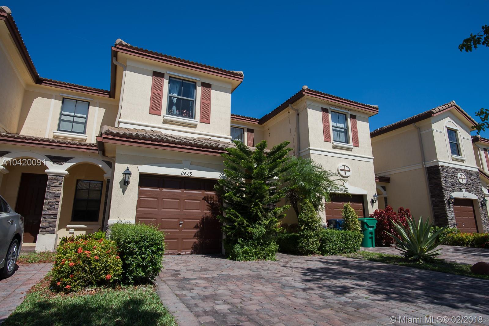 Great Opportunity to own this Townhouse 3 Bed/2.5 Baths. Functional floor plan with formal living & dining room. Nice Kitchen overlooking family room, Wood-Finish Cabinets,Stainless Steel Appliances, Granite Countertops with breakfast area bar. The Family Room also gives access to an outdoor Patio. The 2nd floor includes a Laundry Room, 2 Bedrooms both with access to a full bath with vanity and tub, Master Suite, with a walk-in closet, master bath with dual sinks, marble countertop, vanity, and glass enclosed shower. Walking distance to community pool and mail boxes area. No Neighbors on the back. Excellent location. Close to great schools, mayor highways, and Doral Legacy Park in which you can gather to enjoy sports, cultural arts. Current owner will move one month after closing.