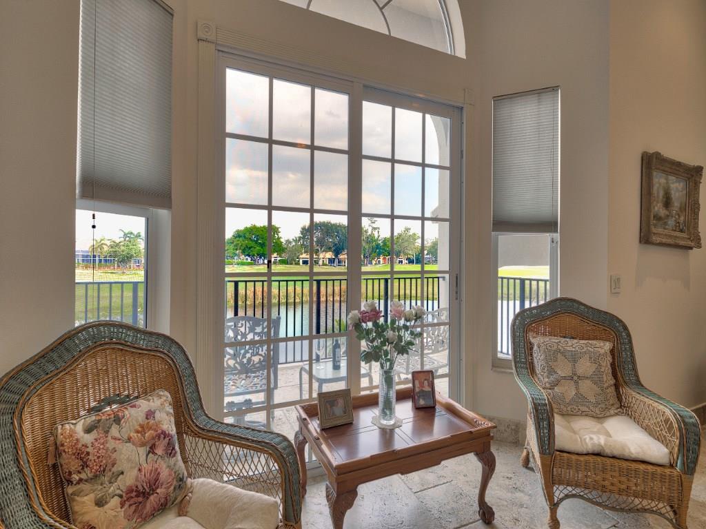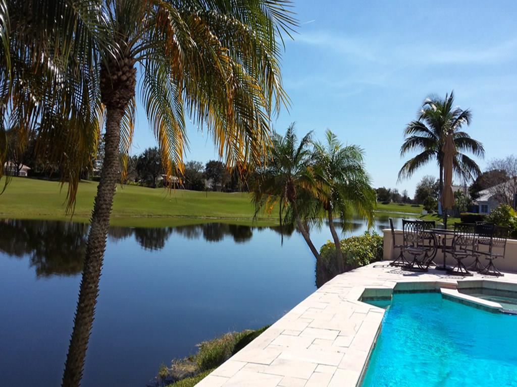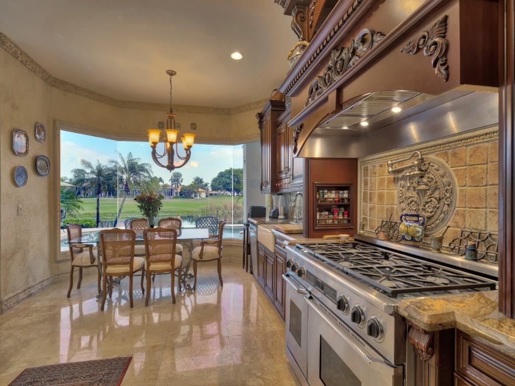 Just Re-Priced! Exceptional 2 story custom home, quiet cul-de-sac Eagle Trace. 5 Bedroom, 4 Bath, Office (can be 6th Bedroom) Stunning Lake & rolling Golf Course views. Spacious outdoor marble patio, summer kitchen. Impact windows, custom trim, marble & wood flooring. Gourmet Kitchen Lg. center island, Granite counters, SS appliances, Sub-Zero, 6 burner gas Dacor Stove, Central Vac. Master suite w/sitting area, balcony overlooking pool, water and golf course, large master bath. Tennis& Basketball courts.