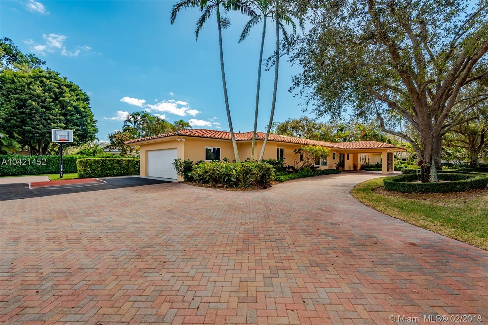 Wonderful ranch-style North Pinecrest home (renovated by Hollub Homes) features 4 bedrooms, 4 full baths, formal dining and living rooms, open kitchen to large family room, as well as separate television/media room. A covered terrace surrounds an extra-deep swimming pool with diving board; expansive fenced and landscaped backyard and basketball court. Includes custom cabinets/built-ins, abundant closets/storage, advanced security system (with cameras), new generator, surround-sound speaker system, air-conditioned garage, and hurricane/impact windows/doors. Excellent Palmetto/Pinecrest school district. Easy to show; please call for an appointment