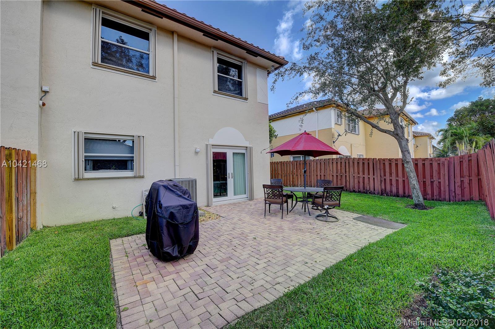 STUNNING IMPECCABLE CORNER TOWNHOME IN PRESTIGIOUS VIZCAYA IN MIRAMAR. 3 BEDROOMS 2 AND A HALF BATHS, WITH EXTRA LAND ON THE SIDE OF THE HOUSE. WHITE KITCHEN WITH GRANITE COUNTER TOPS, SS APPLIANCES, FRONT LOADER WASHER AND DRYER, ACCORDION SHUTTERS, ENERGY EFFICIENT AC UNIT FROM 2015, WATER HEATER 2016, NEW GRASS IN THE BACK, SMART RINGER WITH CAMERA, KEYLESS ENTRY, AND SMART THERMOSTAT. ORIGINAL OWNERS THAT MAINTAIN A PEST CONTROL CONTRACT EVERY 2 MONTHS, CLEAN ROOF, THERE ARE 3 ENTRANCES 2 ARE GUARDED 24/7. EXCLUDED: DINING AND HALLWAY CHANDELIER.