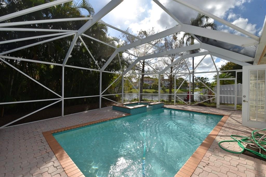 Beautiful open floor plan home. Den is being used as 4th bedroom. Home features a remodeled kitchen with granite countertops, extended cabinets, new A/C 2015, retractable patio shade. French doors welcome you to the oversized pool patio & 210+ sq. ft. side patio. Pool is screened in on the lake and an as-is pool heater. Conveniently located directly next door to the playground, close to places of worship, shopping, restaurants and universities. Community includes pool, exercise room, tennis courts, etc.