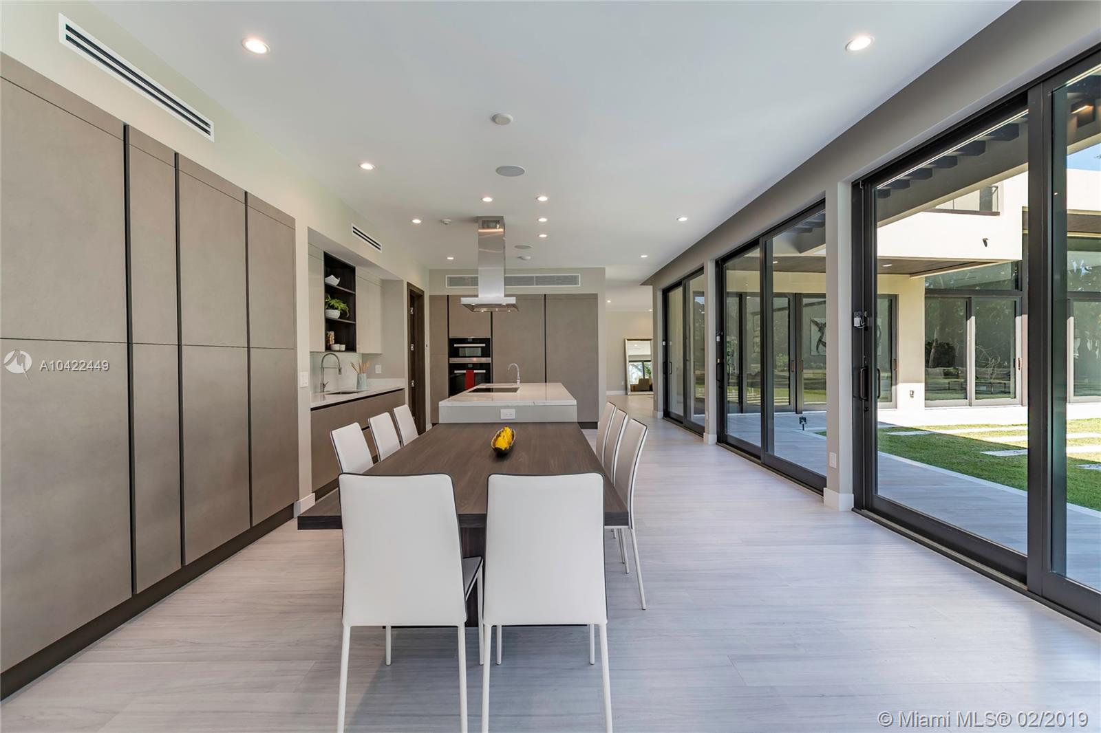 COMPLETED in 2018, this modern masterpiece is conveniently located in a walled community in the prestigious and quiet area of Pinecrest. Boasting a 39,508 SF LOT, the brand new home features stunning OAK TREES throughout the property and an OUTDOOR ENTERTAINMENT area with full BBQ and dining, as well as infinity pool and spacious yard. With 7,016 SF of interior space/8,864 adjusted SF and 6 bedrooms/7.5 bathrooms plus an additional den for gym or office, each room offers glass FLOOR TO CEILING WINDOWS with views of the garden and pool. Top of the line attention to detail throughout such as Italian cabinetry, Miele appliances, Italian Porcelain floors and Quartz countertops.