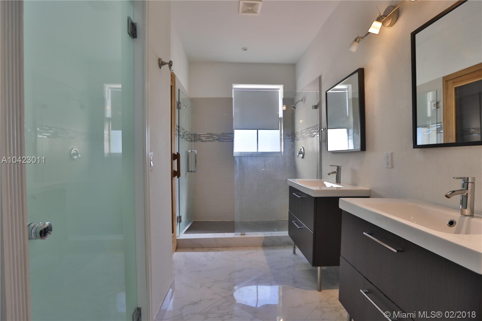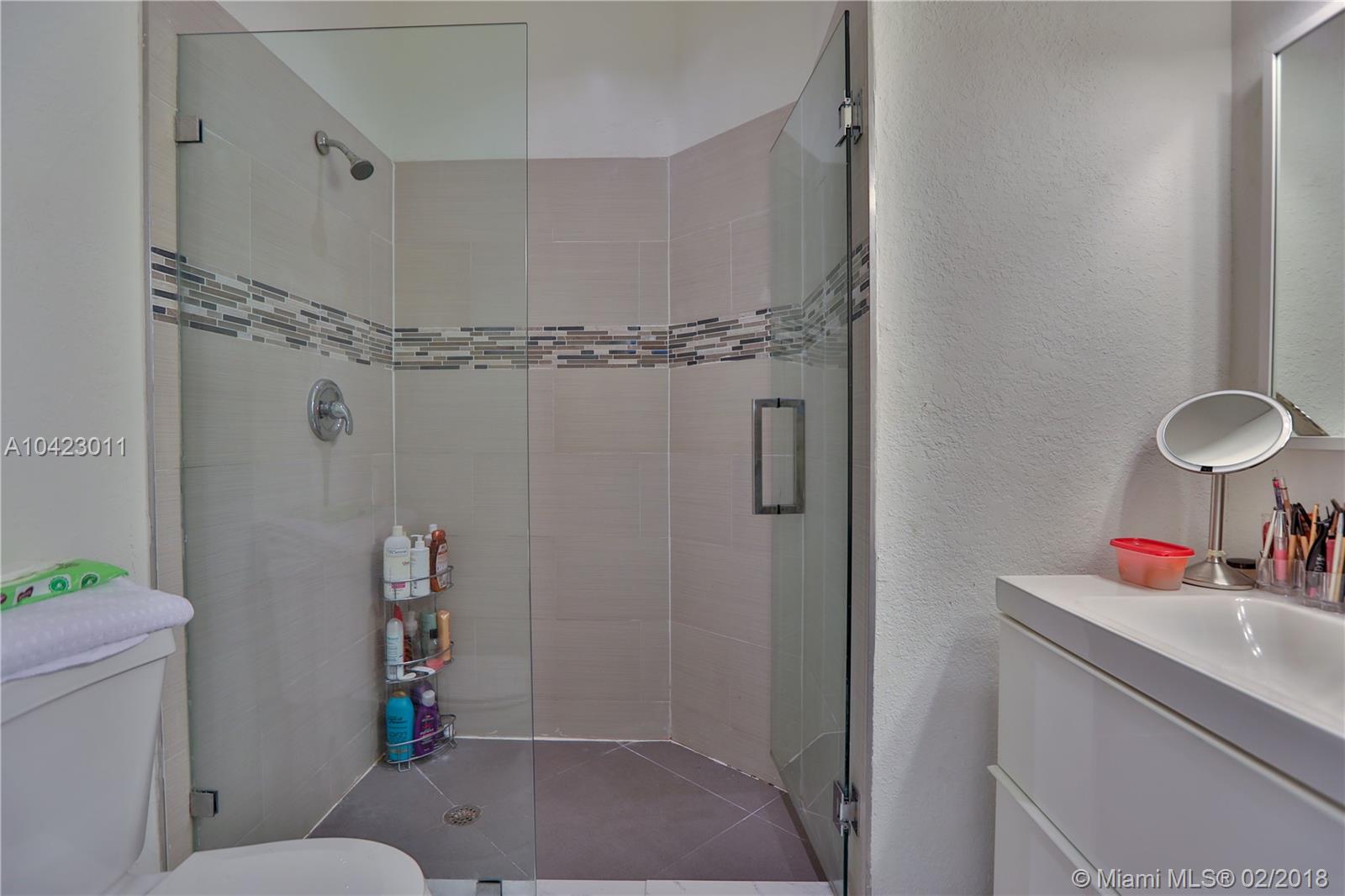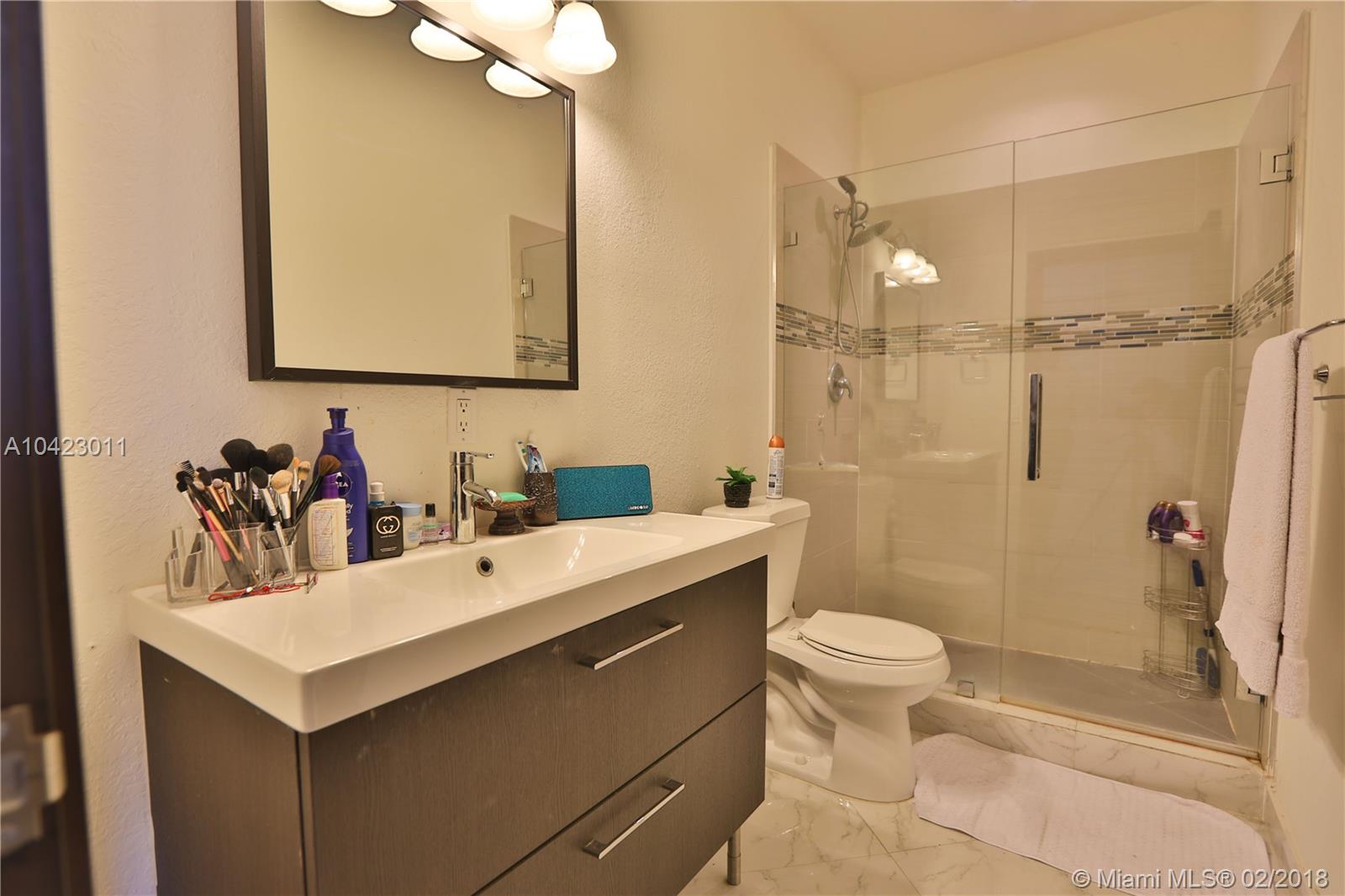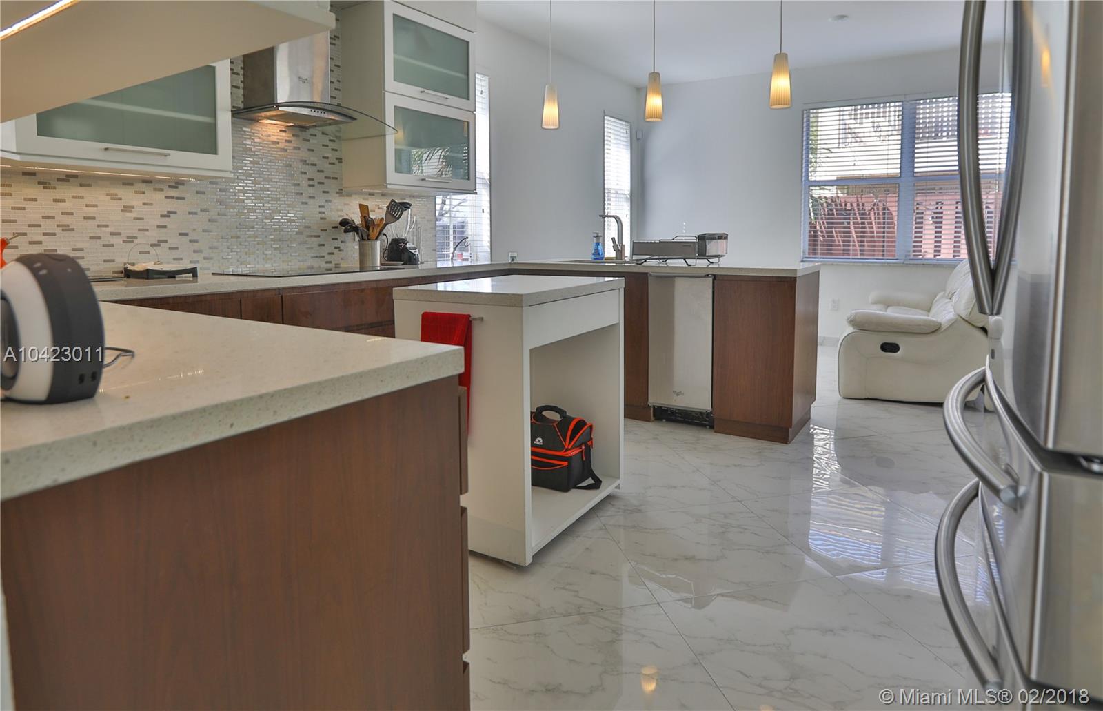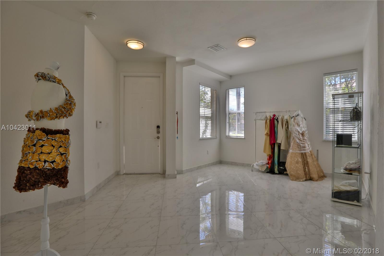 Enjoy Modern Elegance in this 4 Bedroom 3.5 Bath home in the highly desirable are of Doral. Completely upgraded with Porcelain tile throughout & carpet in bedrooms. Contemporary design includes a master bedroom downstairs, 1/2 bath for your guests, dining room, living room, laundry room, one car garage & covered terrace leading to your tiled fenced in patio. Gather in the completely remodeled kitchen with designer Italian cabinets, top-of-the-line stainless steel built-in appliances, & Granite counter tops. The family room boasts 20 foot high volume ceilings with a glass & stainless steel staircase that lead you upstairs to 3 additional bdrms including a spacious master bdrm with 2 large closets, Cedar wood Sauna & private balcony. Plenty of available parking and minimal association fee.