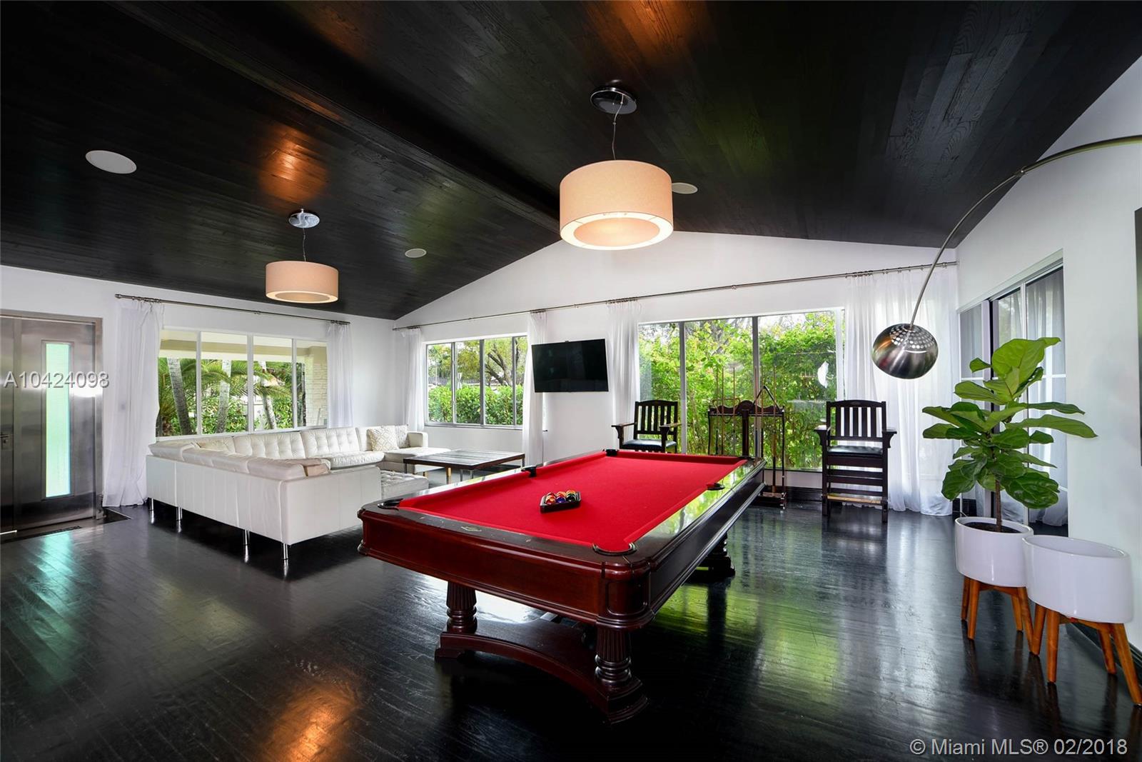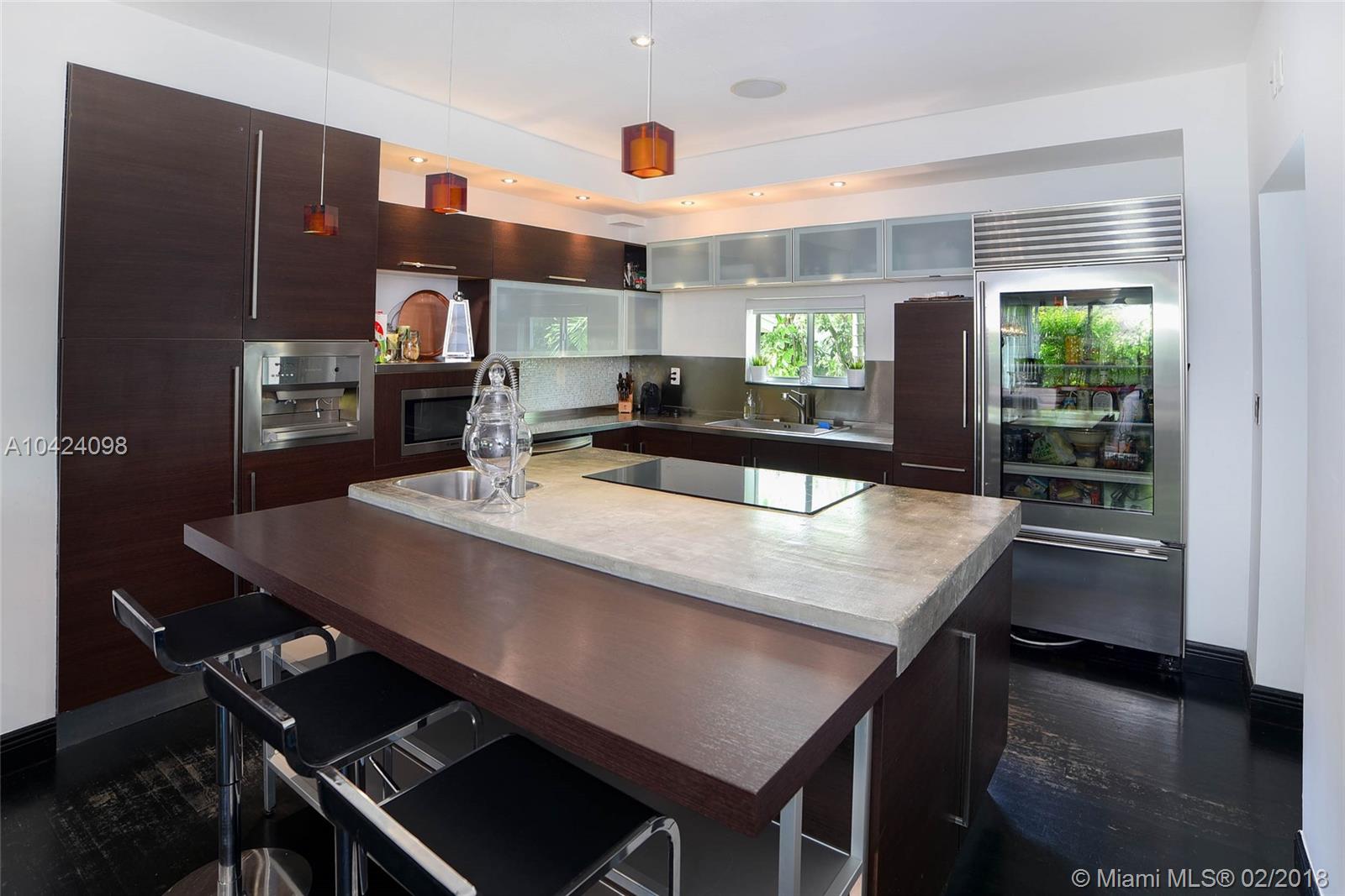 Located in the heart of Coral Gables, this over sized gated corner lot with modern home is sure to please. Beautiful ebony stained hardwood floors throughout, vaulted ceiling in living areas, large bedrooms and closets (1 walk-in), contemporary kitchen with stainless steel counter tops, solid concrete island, Bosch and subzero appliances and solar panels on roof. Third bedroom was converted to a movie theater but can easily be converted back to a bedroom. The home is on a low traffic street with minimal movement. Within walking distance to renovated Miracle Mile, Merrick Park, Vicky Bakery and about 1 block from a free city trolley stop.