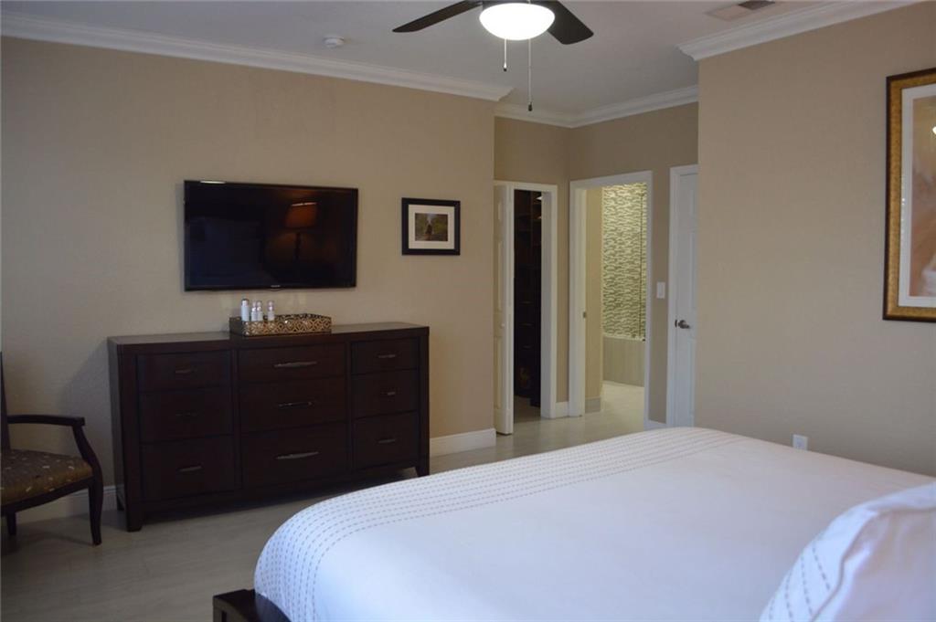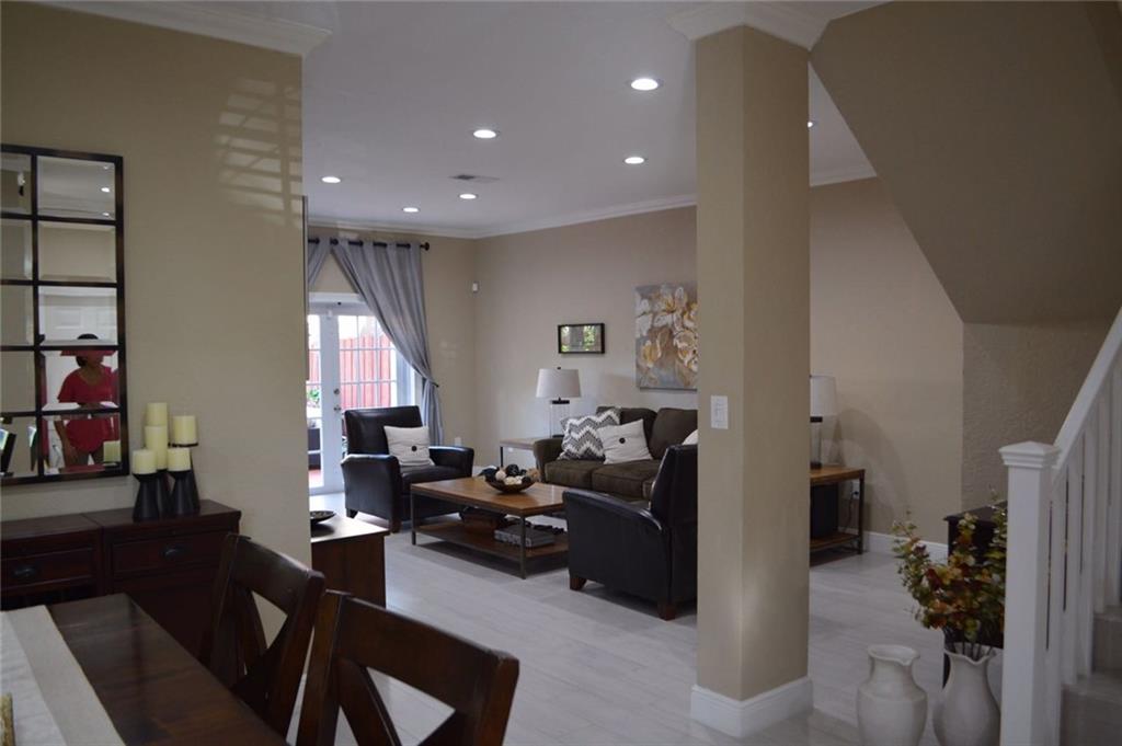 Absolutely stunning remodeled unit. Move right in to this immaculate Townhome with formal dining room, fabulous kitchen with top of the line stainless appliances and quartz counters, pantry closet. Huge fenced backyard with no lawn to cut. Custom built in closets in all bedrooms. Seamless shower doors in absolutely gorgeous baths. Hi hat lighting French doors, dimmers, custom home alarm system, with 4 exterior cameras ,accordion hurricane shutters, wood look tile flooring throughout, so much more must see