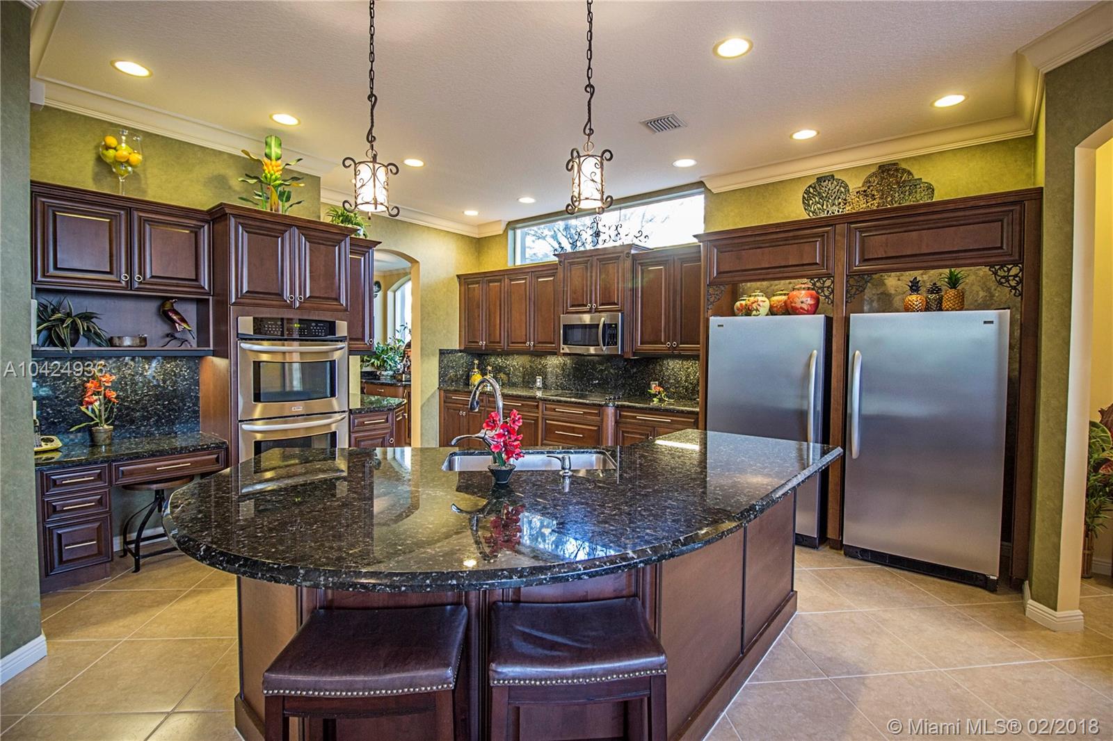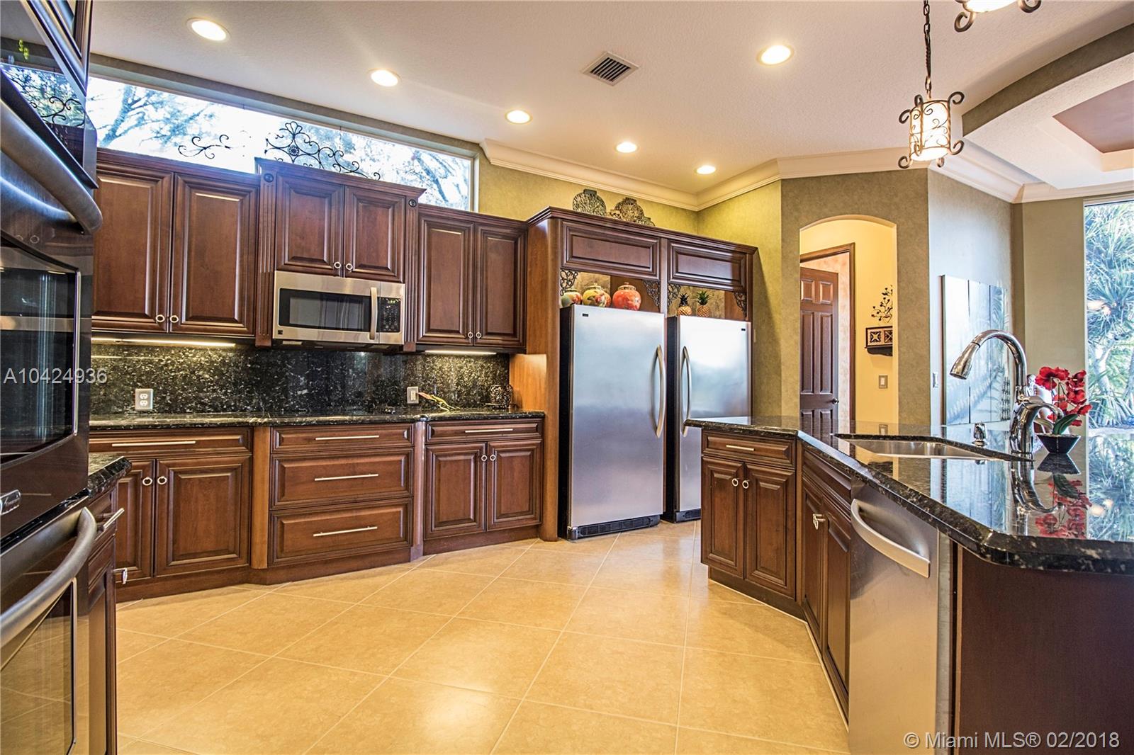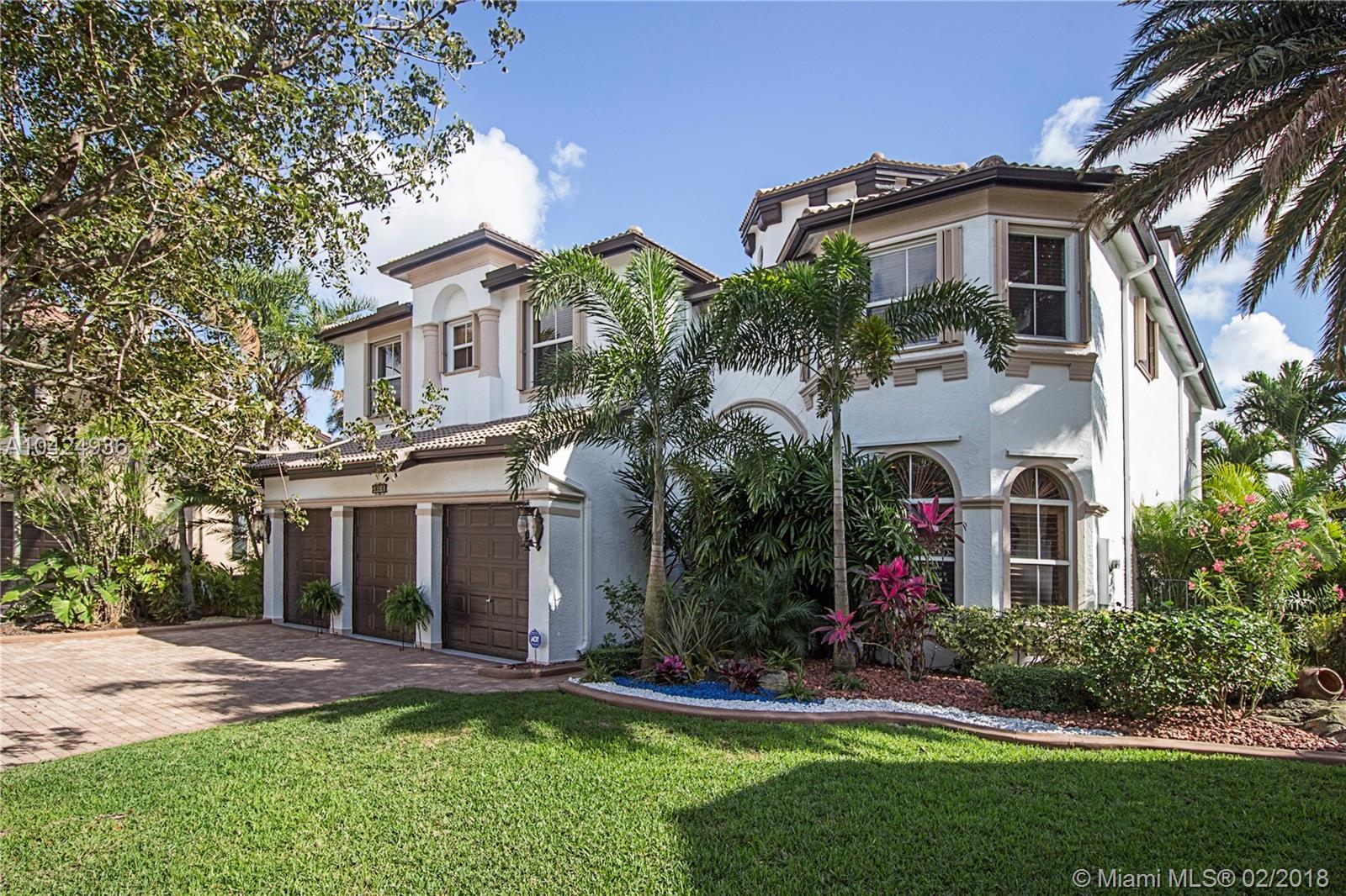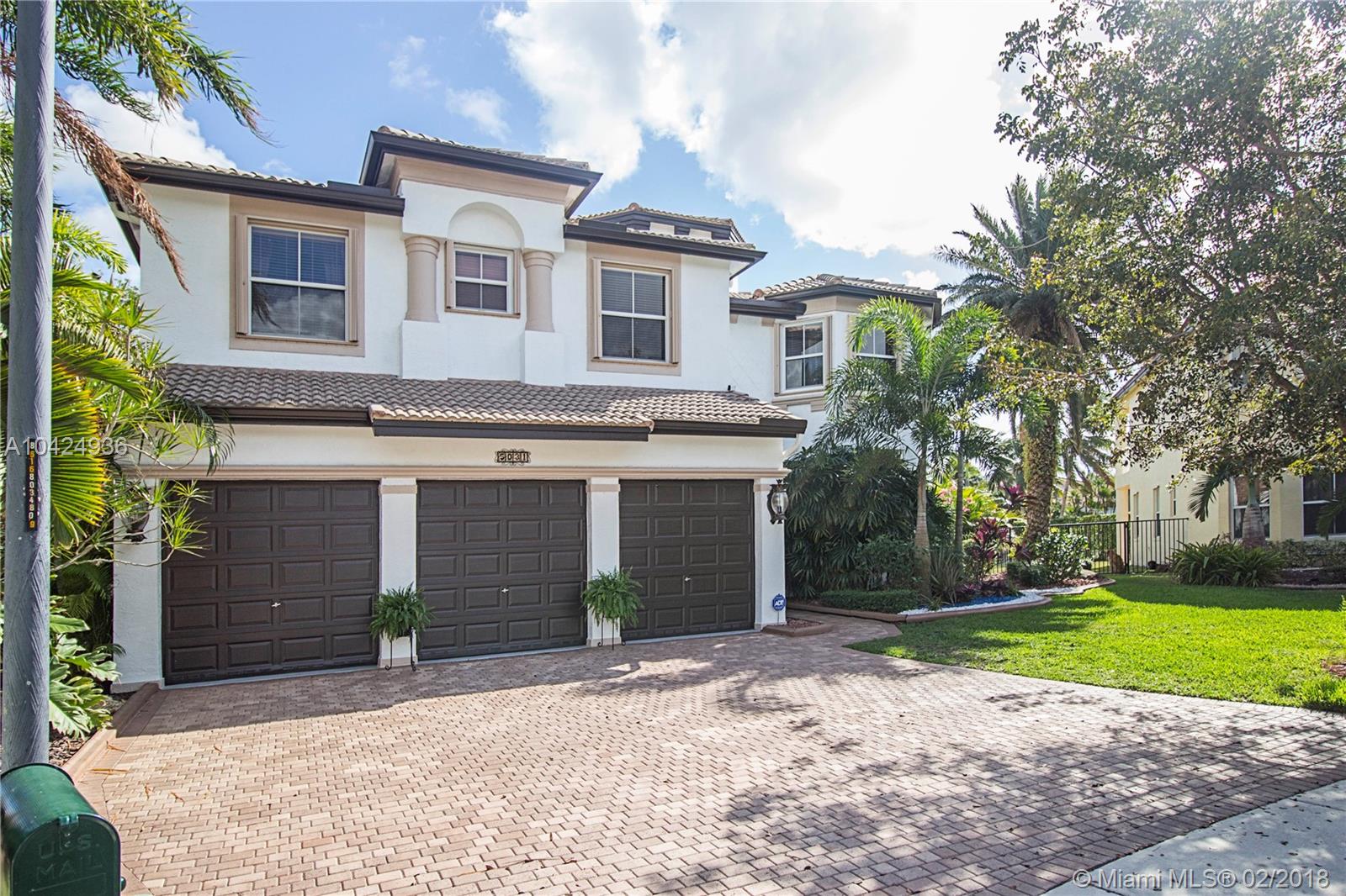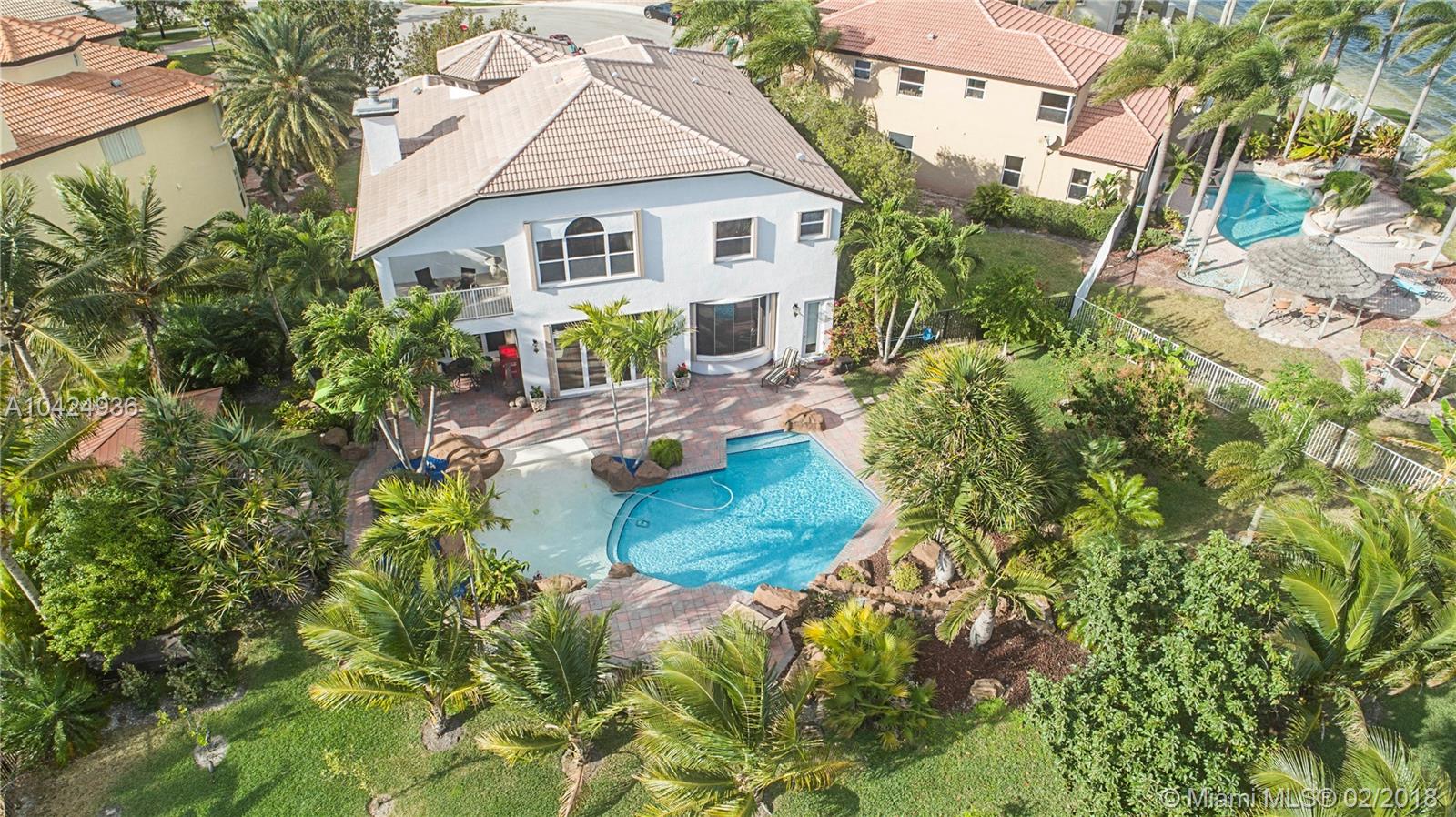 “You will love this one of a kind resort like backyard 2-story home with authentic Florida charm. This 5-bed,5 ½-bath home has a 3-car garage with 5,130 sq.Ft' of spacious elegance with tile and wood throughout. A roomy master bedroom with a huge master closet. Gorgeous formal dining room and a modern gourmet kitchen with an oversized walk-in pantry. Imagine waking up to a captivating tropical paradise, situated on almost ½ acre, in your secluded backyard with a variety of producing fruit trees. In the evening enjoy and relax to the tranquility of the lake watching spectacular sunsets. This impeccable home is conveniently located in a friendly neighborhood near two airports Miami & FT. Lauderdale, easy access to main highways, very close to shopping malls and great restaurants” Call Now!