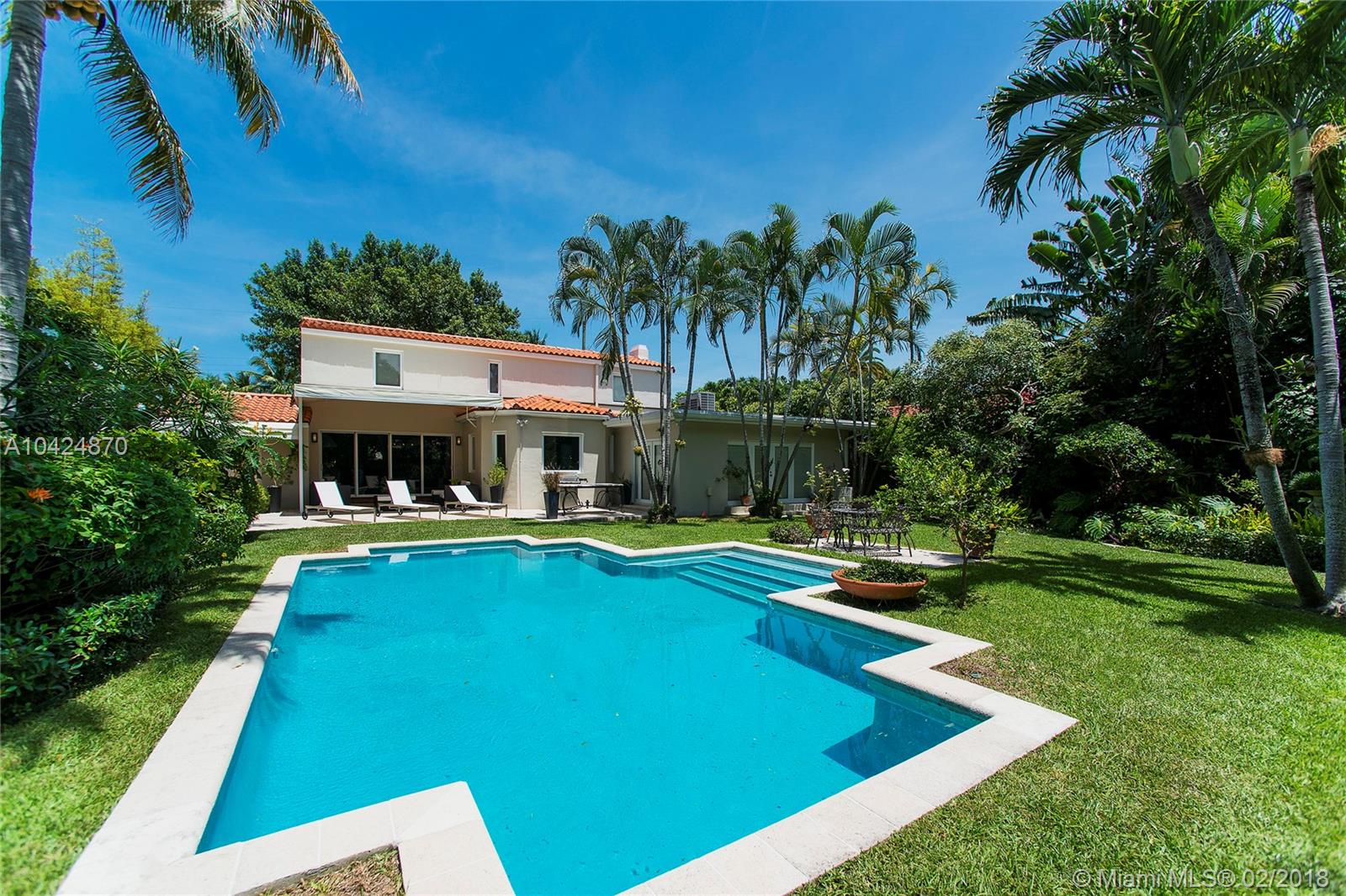 Sophisticated mid-1930s 2-story Miami Beach home, 5 blocks from the ocean on a 10K+ s/f lot. Lush tropical garden with a gorgeous pool in coveted, quiet residential enclave. This restored Central Bayshore 3 bed/3 bath home features a modern kitchen, hurricane impact windows & fresh interiors. Original details & generous layout combine character & history in a refined home located close to schools, youth sports center, golf course, shops, houses of worship, fine dining & trendy Faena District.