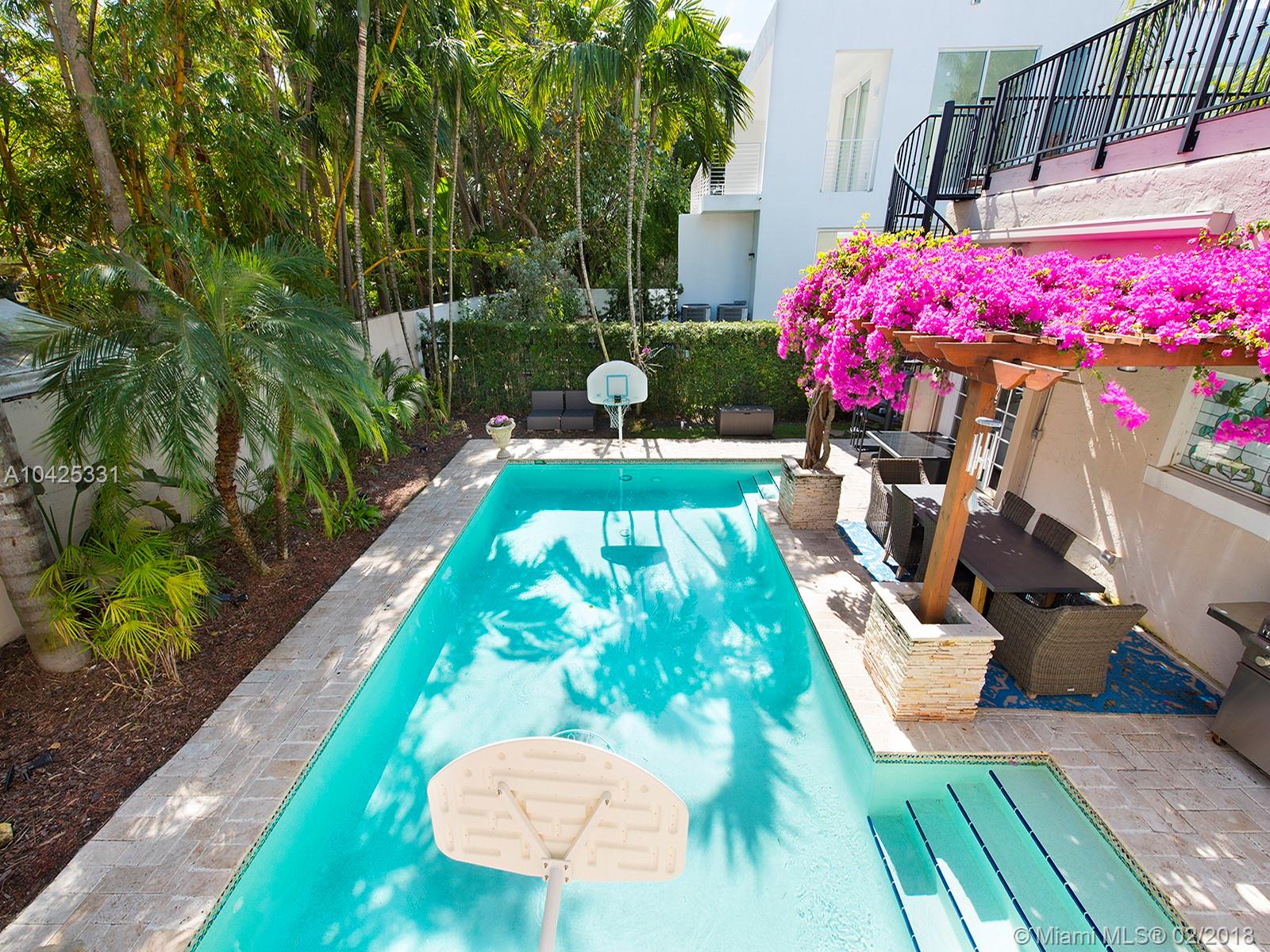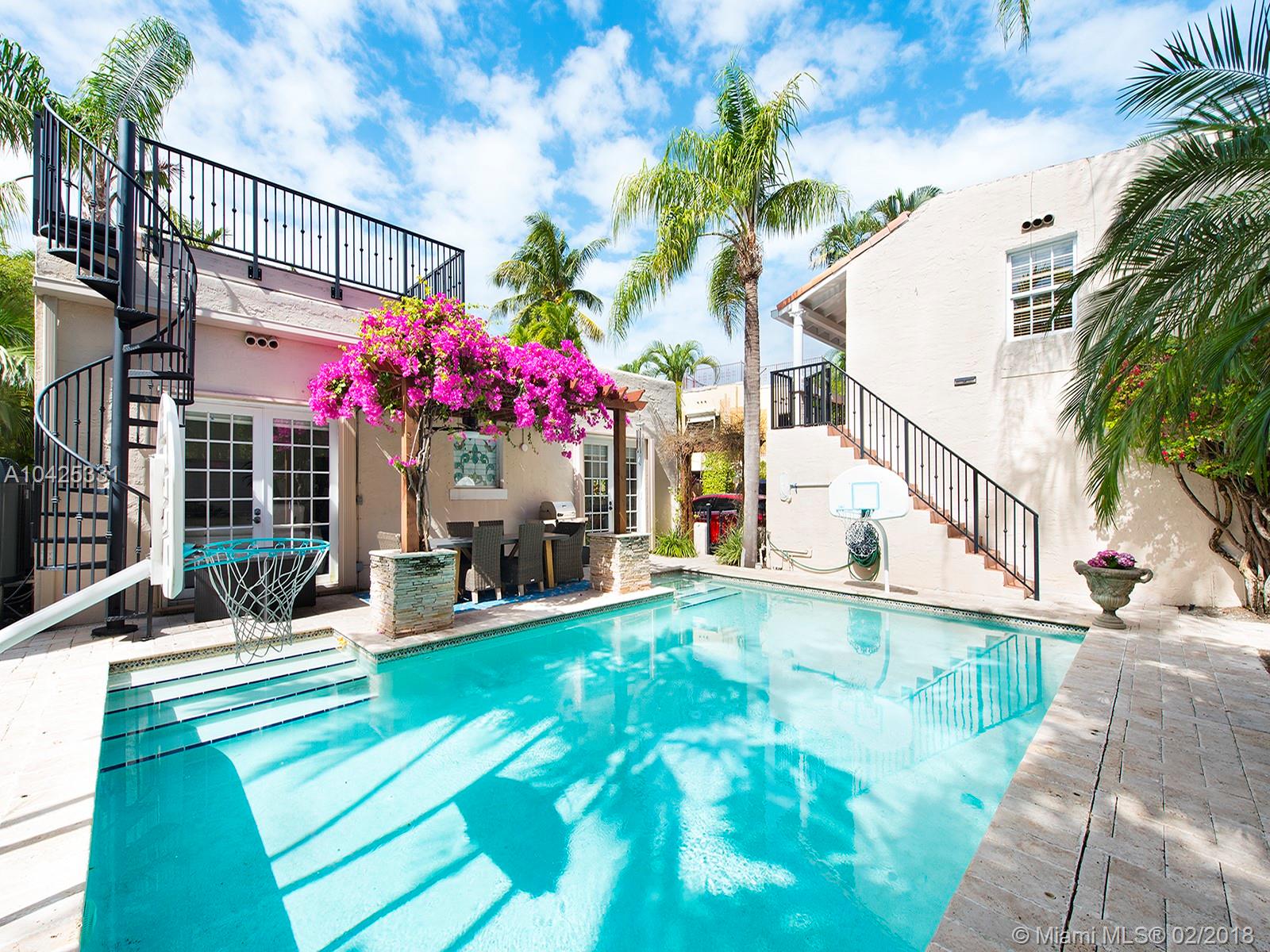 This is one of the most sought after locations in all of Miami Beach, the southernmost part of North Bay Rd. Sunset Harbor Shops & all the restaurants & shopping is literally 1 block away, yet this home is situated on a quiet Residential street with the Who's Who as Neighbors. This spectacular home is from a great decade for construction, full of architectural design & appeal. Included w/the large 2 story main house (4BR's, 4BA's, Den, Formal Living, Formal Dining, Bonus area off kitchen, Roof terrace) is a detached 2 car garage with full bathroom for pool guests on the ground level, and a residential space above with kitchenette, full bath, closet & balcony (great as an office, bonus room, or ideal for short term guests). Amazing pool with BBQ area, fully secured. Call to schedule a tour!