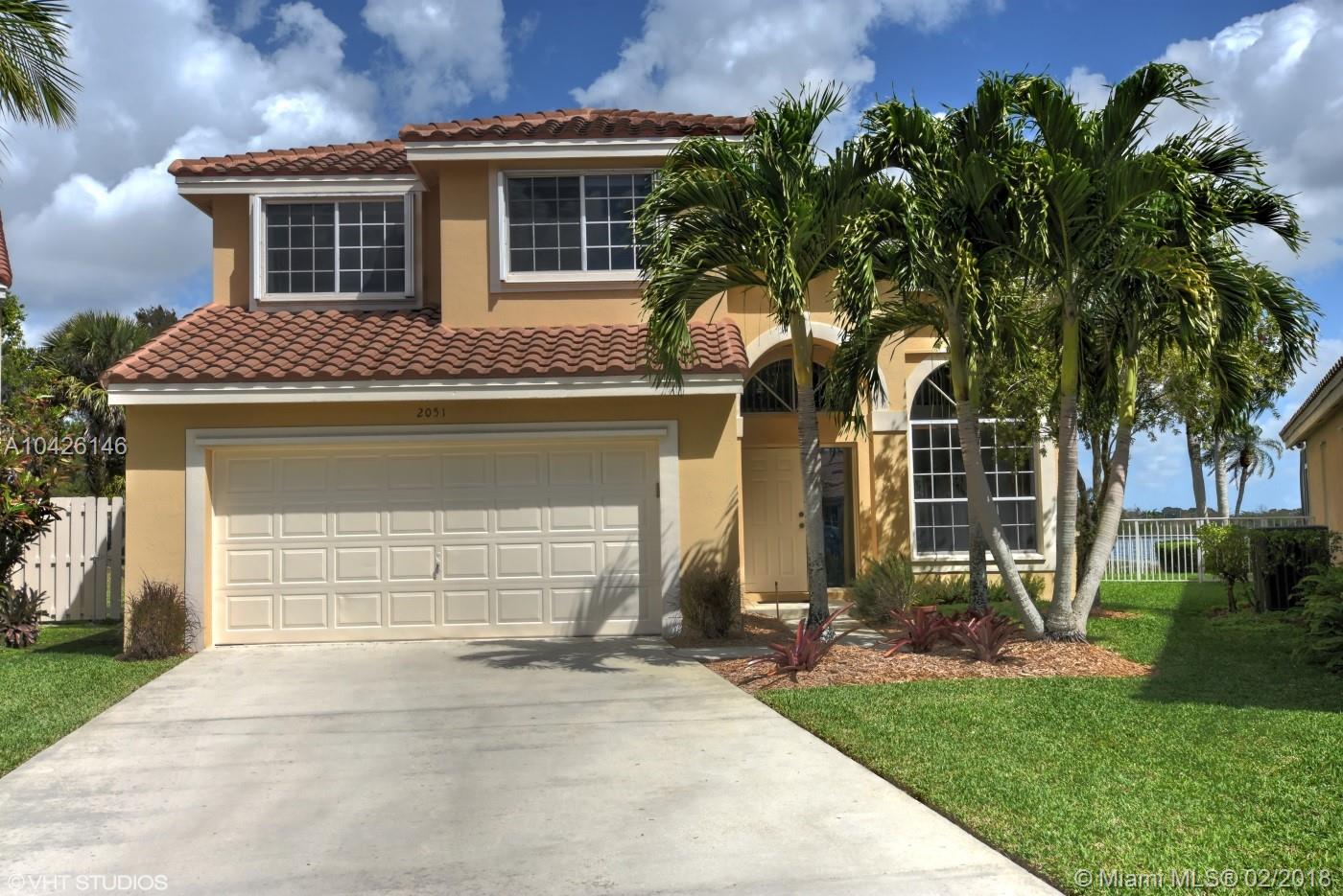 Beautiful 3 bed 2 1/2 bath home in West Pembroke Pines. Property has fantastic roomy layout with all bedrooms upstairs. Entering the property you will see the spectacular uninterrupted half a mile lake view with an over sized backyard of 9000+ feet, all in an A+ school district with a community pool! The large back yard is not overlooked for complete privacy. Extra long driveway can accommodate four cars. All appliances upgraded with matching Frigidaire Gallery series in stainless steel in the kitchen. Large loft big enough to convert into a 4th bedroom. Roof is 4 yrs old with latest code method of tile attachment (adhesive) and the exterior was painted in Jan 2018. All windows have hurricane shutters with accordions upstairs. Wont last!