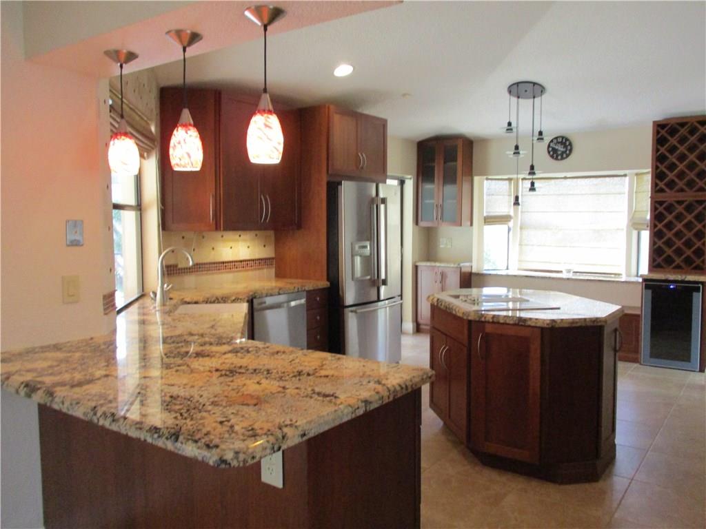 Manicured Curb appeal on Cul de Sac location with circular driveway. Kitchen has Wood Cabinets,granite counters, farmhouse sink, & Stainless appliances with double ovens & wine cooler. Remodeled Baths. MBR has Bamboo flooring, New 12x24 tiles in other bedrooms, Tile throughout living areas. LR and MBR have French Doors that lead out to spacious screened pool/patio area w/custom wet bar. Stone Fireplace, High hats, Hurricane protection, many upgrades. Truly a Pleasure to show.