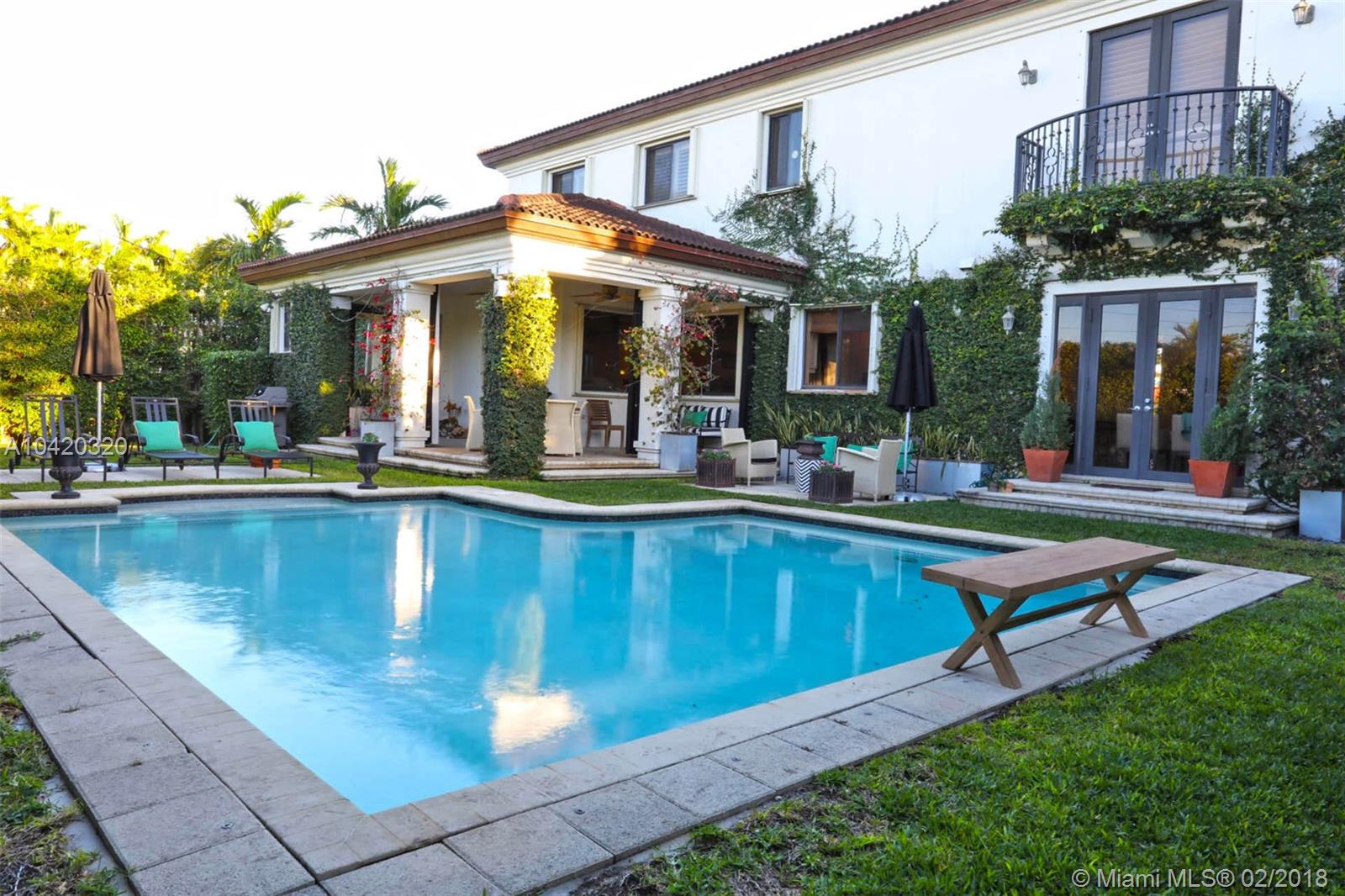 This Mediterranean masterpiece in the heart of Bay Harbor Islands was custom built in 2003. Fully renovated and updated over the years, it features, high ceilings, 8 FT doors, marble and wood floors, Viking appliances, and custom built-ins throughout. 5bd/5.5ba (which includes staff room) + 2 car garage and is over 4,500 SF A/C with high ceilings. A great floor plan for entertaining including a spectacular kitchen with large island and counter eat-in open to family room and covered terrace. Lushly landscaped front and back yard with a large privacy hedge. Ideal location within walking distance to the beach, A+ schools, houses of worship, restaurants and shops.