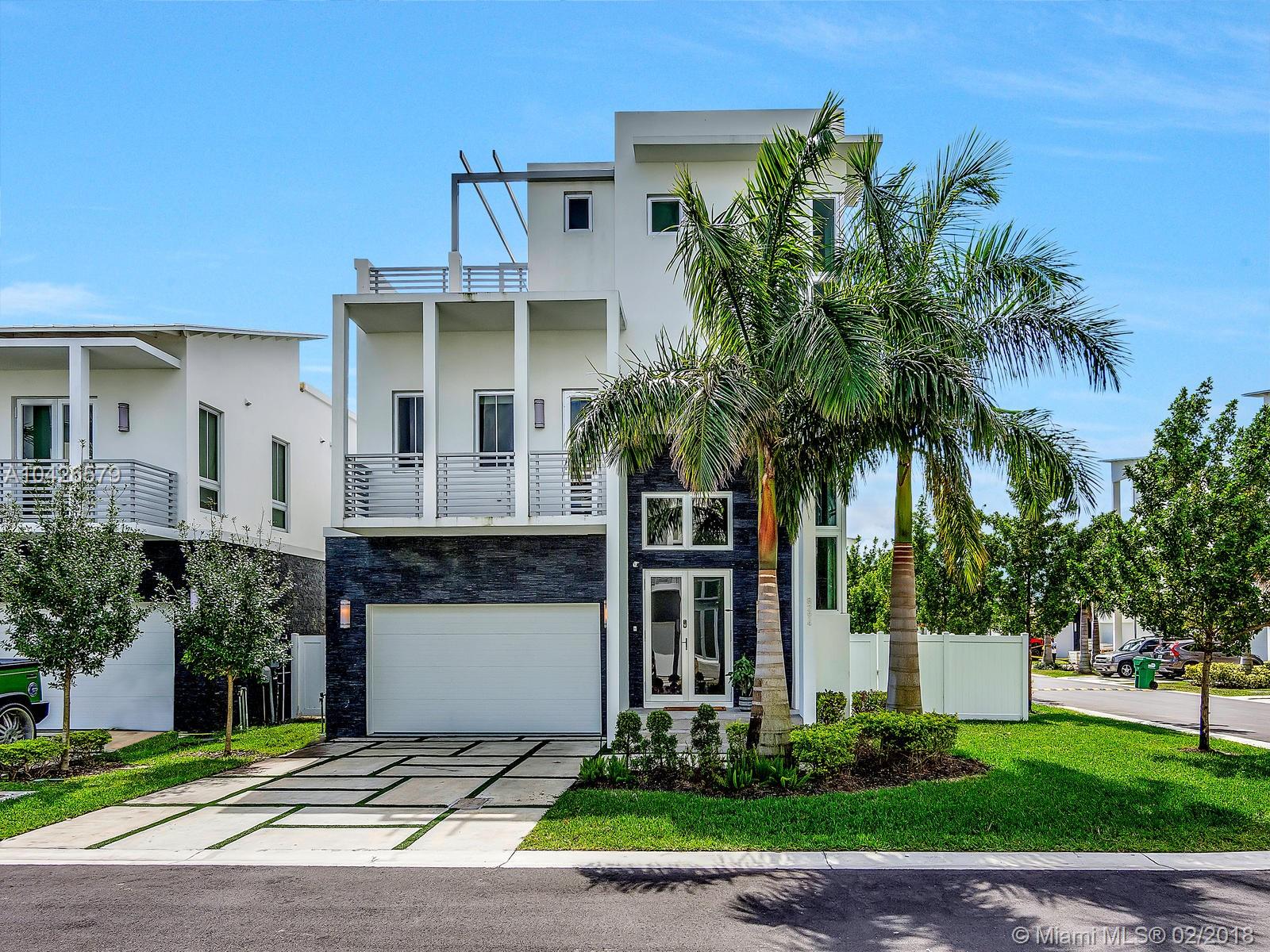 Largest & BEST 3-story corner lot on the market with roof-top deck & outdoor kitchen nestled in most desired location in Doral. Close to nightlife & shops, this home has it all! Located in gated community with 24 hour security. Decorated & styled by local interior designer. Property features impact windows & doors, elevator, wine cellar, open-living floor plan, Italian kitchen cabinets, quartz counter tops & backslash, large island, high end stainless steel appliances & cook top, large custom closets, designer cabinets, fixtures, spa master bath w/ his & her vanities & soaker tub, porcelain tiles, wood floors, security system, high energy efficient a/c, smart cable wiring. 1 full bedroom & bath downstairs. Large roof top terrace with cabana bath, kitchen & jacuzzi. *Furniture negotiable*