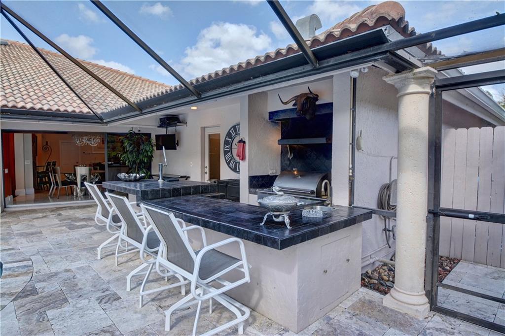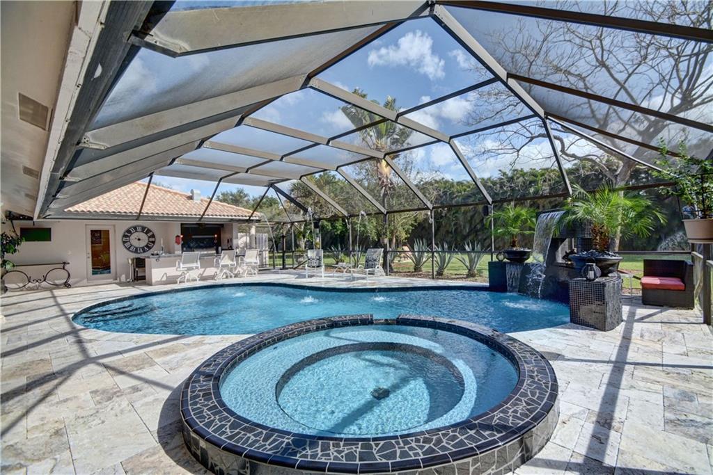 Gorgeous home on an acre lot with plenty of room to expand! Interior features include 4 bedrooms plus office, marble flooring throughout living areas, crown molding, gourmet kitchen w/gas cooktop, stainless steel appliances, custom built-in bar w/ice-maker, custom closets, steam shower, central vacuum. Huge screened patio, salt water pool, gas pool & spa heater, summer kitchen, gas fireplace, 2 fountains and waterfall. Hurricane shutters and stand-by generator.