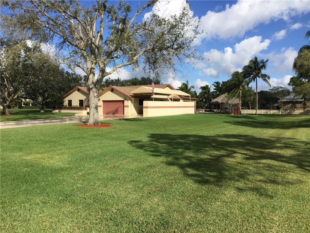 Ranch style home sitting on over an acre of lush green grass, large oak trees, and palms.Home located in the prestigious “Ivanhoe Estates” neighborhood in South West Ranches. House is on a quiet dead end cul-du-sac street. Over 2400 sq ft under air. A 3000 sq ft concrete driveway to park motorhome/boat.House has impact windows throughout.Roofed covered patio lanai including a wet bar.Granite and wood cabinets throughout kitchen and baths.2 stone fireplaces. To more features to list. A must see property.