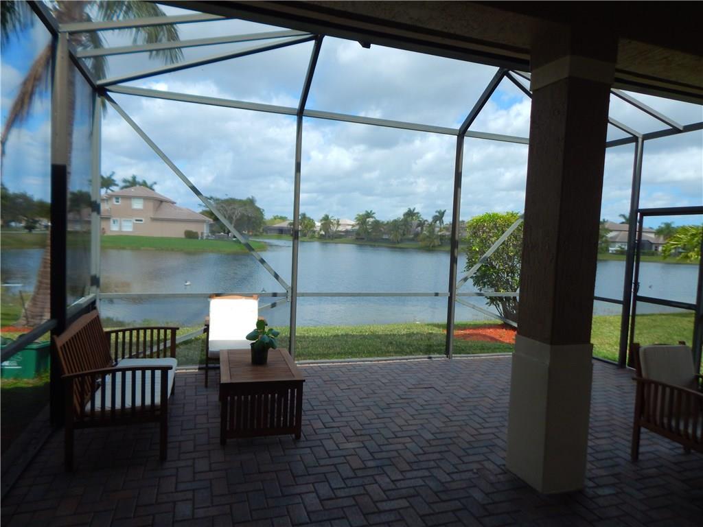 Move in ready BEAUTY ...come visit today. What a VIEW!!! You will be able to enjoy the outdoors all year round in the cozy screened in patio & wide water views from this premium lot. Bright home with tons of light. Master has fantastic views & separate his & hers vanities, shower & whirlpool tub. Split floor plan. French doors. Don't forget the schools...ALL "A"! Guard-gated, clubhouse, exercise room, game room, tennis courts, Tiki bar, playground, whirlpool spa, billiard room, & heated pool.
