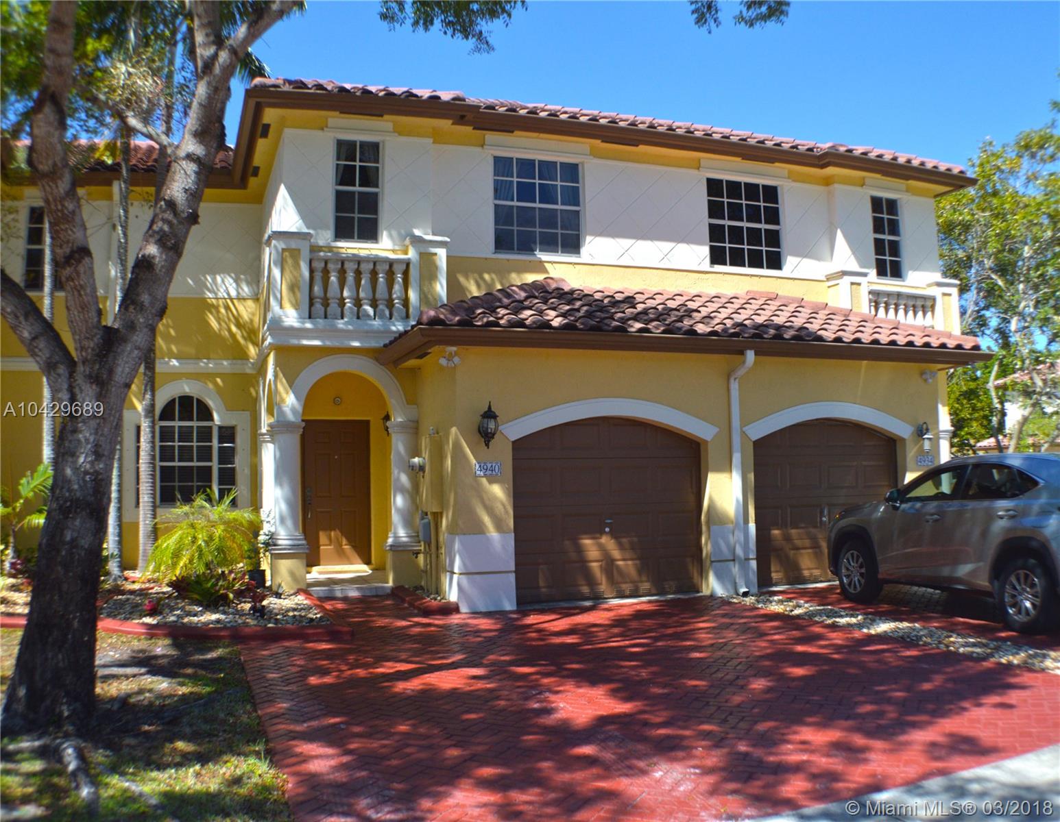 SANTORINI AT VIZCAYA! Spectacular Townhome has over 1,630 SQ FT, located on entrance of division with STEPS TO CLUBHOUSE!! This Townhome has a much larger backyard and a full laundry room with top Shelves! This unique Townhome has 3 Bdrms , 2 Ba upstairs & a Foyer/Livingrm/Diningrm Familyrm/ Kitchen/Half Ba & 1 Car Gar downstairs. The Kitchen opens to the Familyrm that leads to the lrg patio and fenced backyard. This Townhome is perfect for children because of the lrg backyard, the sidewalks, a quiet street & even a child's park & the Clubhouse/Community pool steps away. SANTORINI AT VIZCAYA is close to top Schools such as Somerset Academy & easy to get to I-75, the Palmetto and the Turnpike 821!