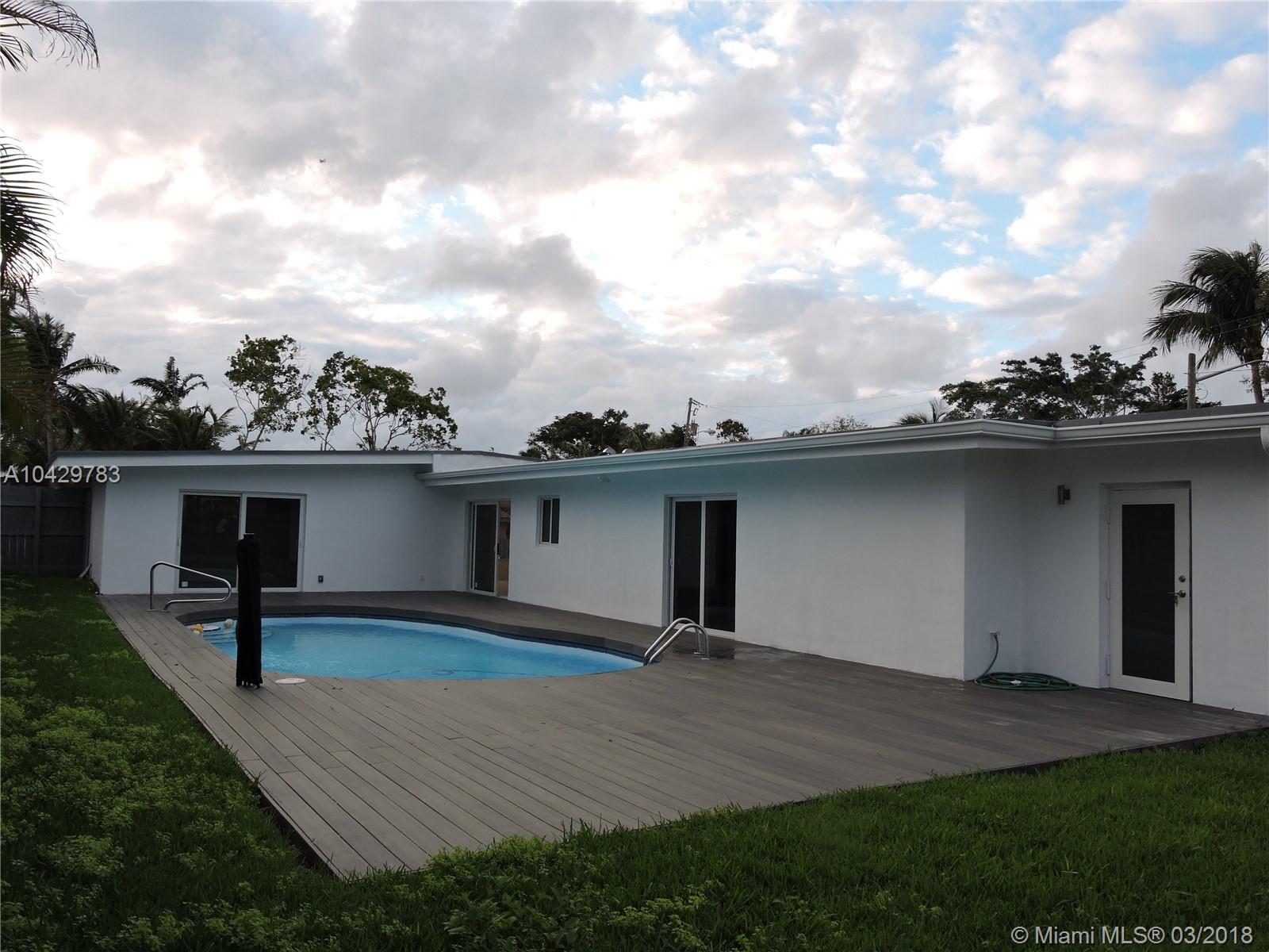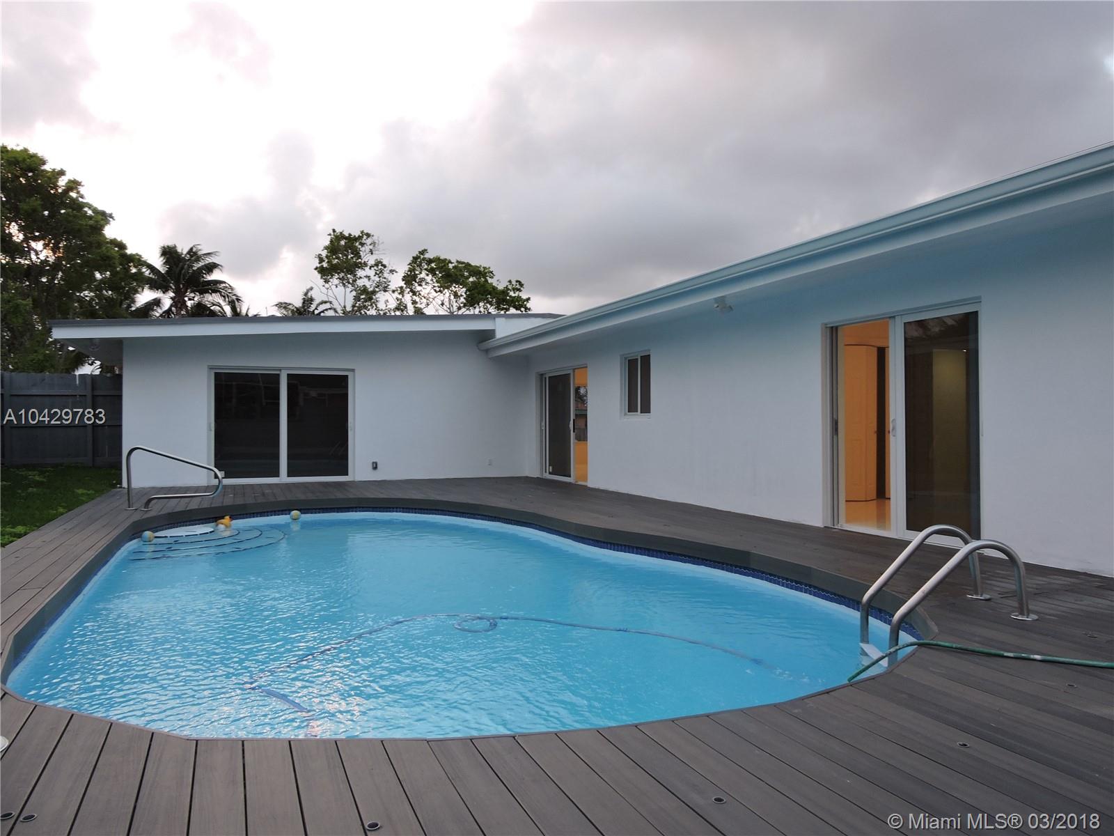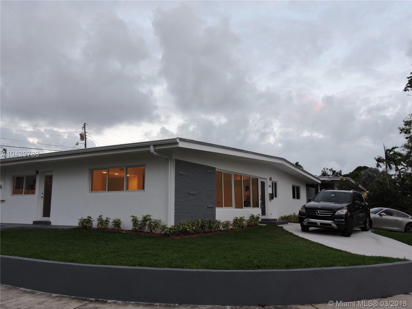 Spectacular corner house fully-renovated, with 4 bedrooms, 3 bathrooms, open layout and huge living room. This house is a tropical paradise with abundance of natural light, surrounded by lush landscaping and palm trees. Backyard is stunning botanical garden with contemporary pool and magnificent deck perfect for entertaining. Porcelain floors, new flat tile roof, impact casement windows & doors, new AC unit, updated kitchen with stainless steel appliances, 1 car garage, and a large storage room in a separate area. Call or e-mail listing agent for showings - Easy to show