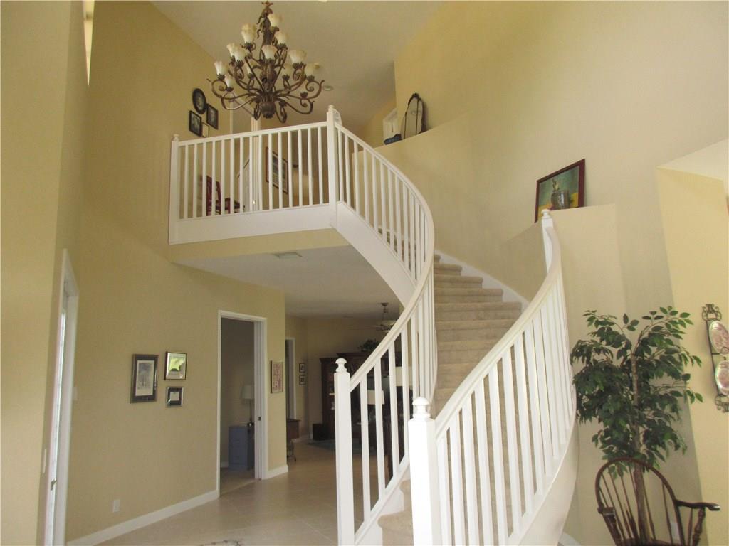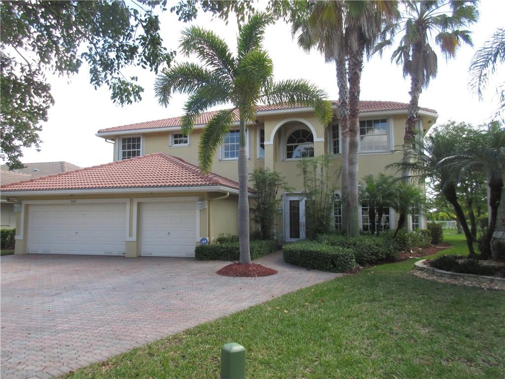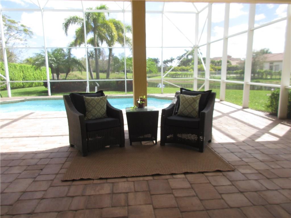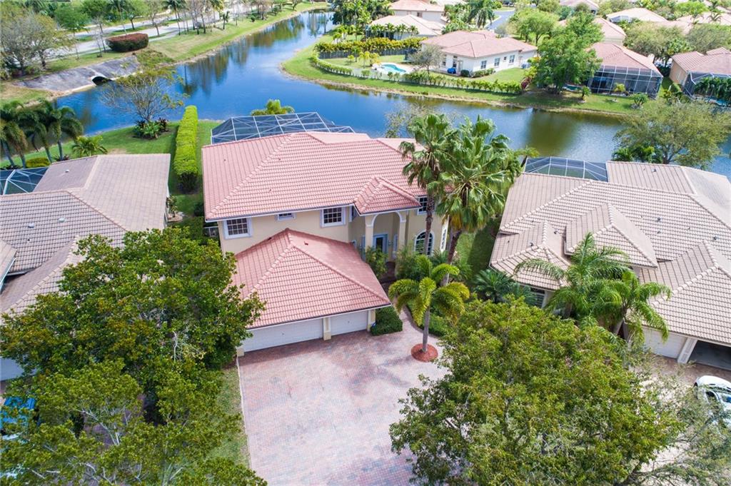 Spectacular lakefront home. 5 bedrooms+office, & updated bathrooms. Beautiful new kitchen with wood cabinets quartzite countertops, provides a snack bar with stools, & a 10' high ceiling in the breakfast area and top of the line stainless steel appliances. New carpeting just installed. The winding staircase leads to the master bedroom with sitting area, 2 walk in closets and double French doors to the screened balcony patio with panoramic view of the water & the pool. Hurricane shutters. Great schools