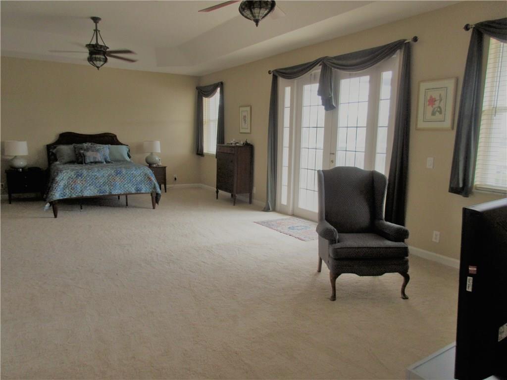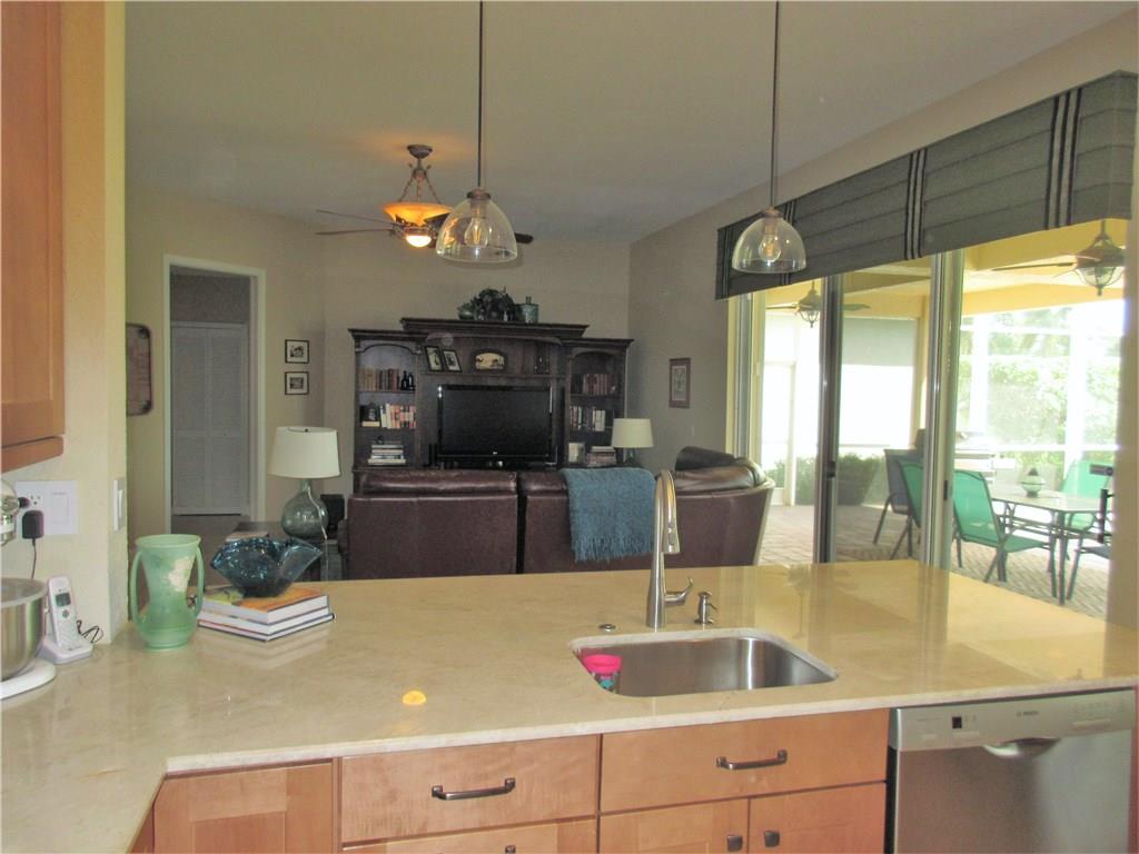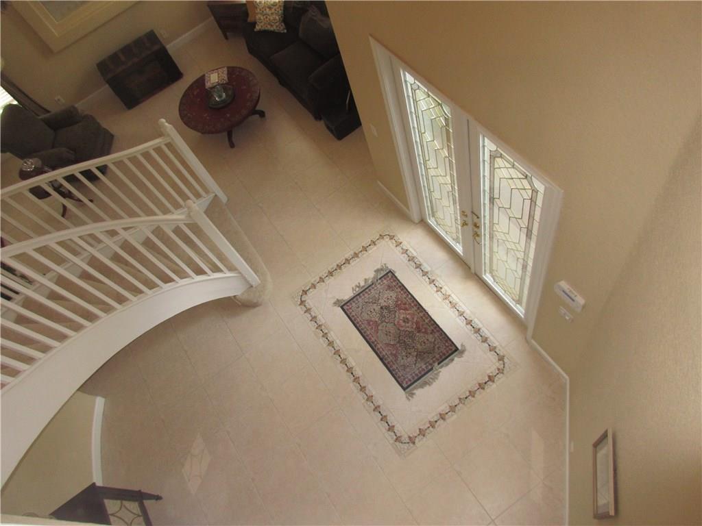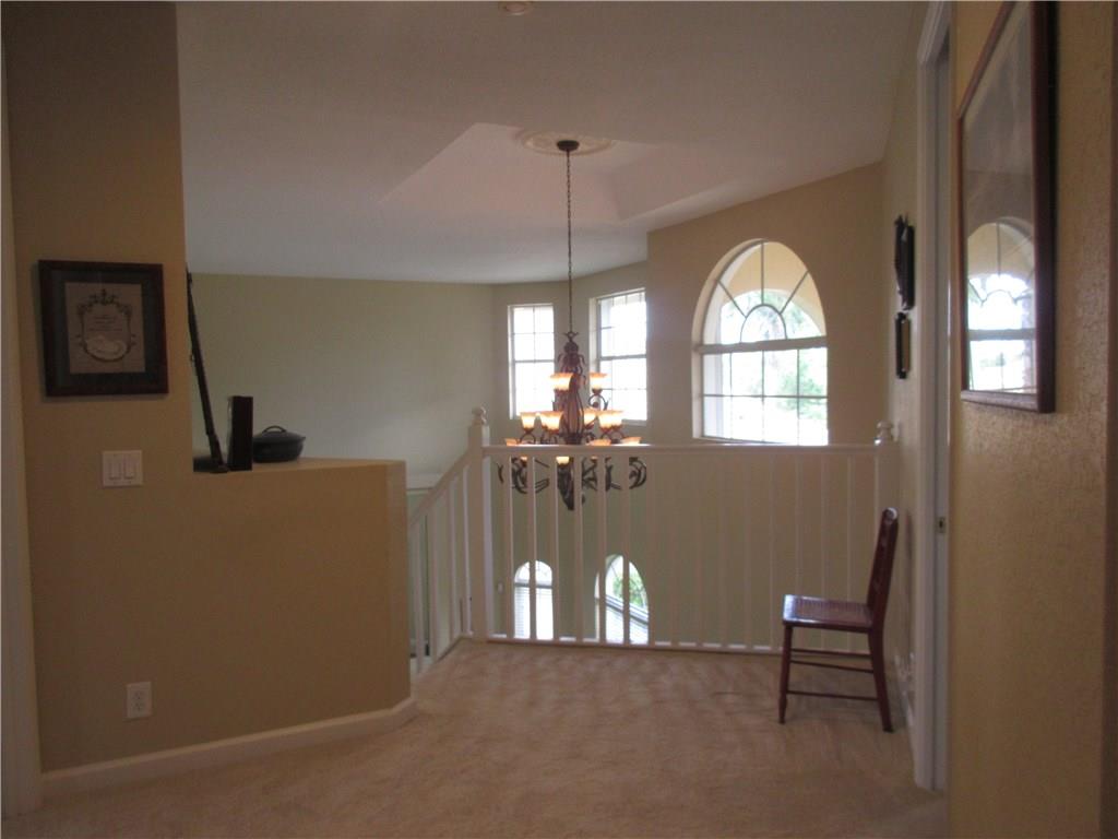 Spectacular lakefront home. 5 bedrooms+office, & updated bathrooms. Beautiful new kitchen with wood cabinets quartzite countertops, provides a snack bar with stools, & a 10' high ceiling in the breakfast area and top of the line stainless steel appliances. New carpeting just installed. The winding staircase leads to the master bedroom with sitting area, 2 walk in closets and double French doors to the screened balcony patio with panoramic view of the water & the pool. Hurricane shutters. Great schools