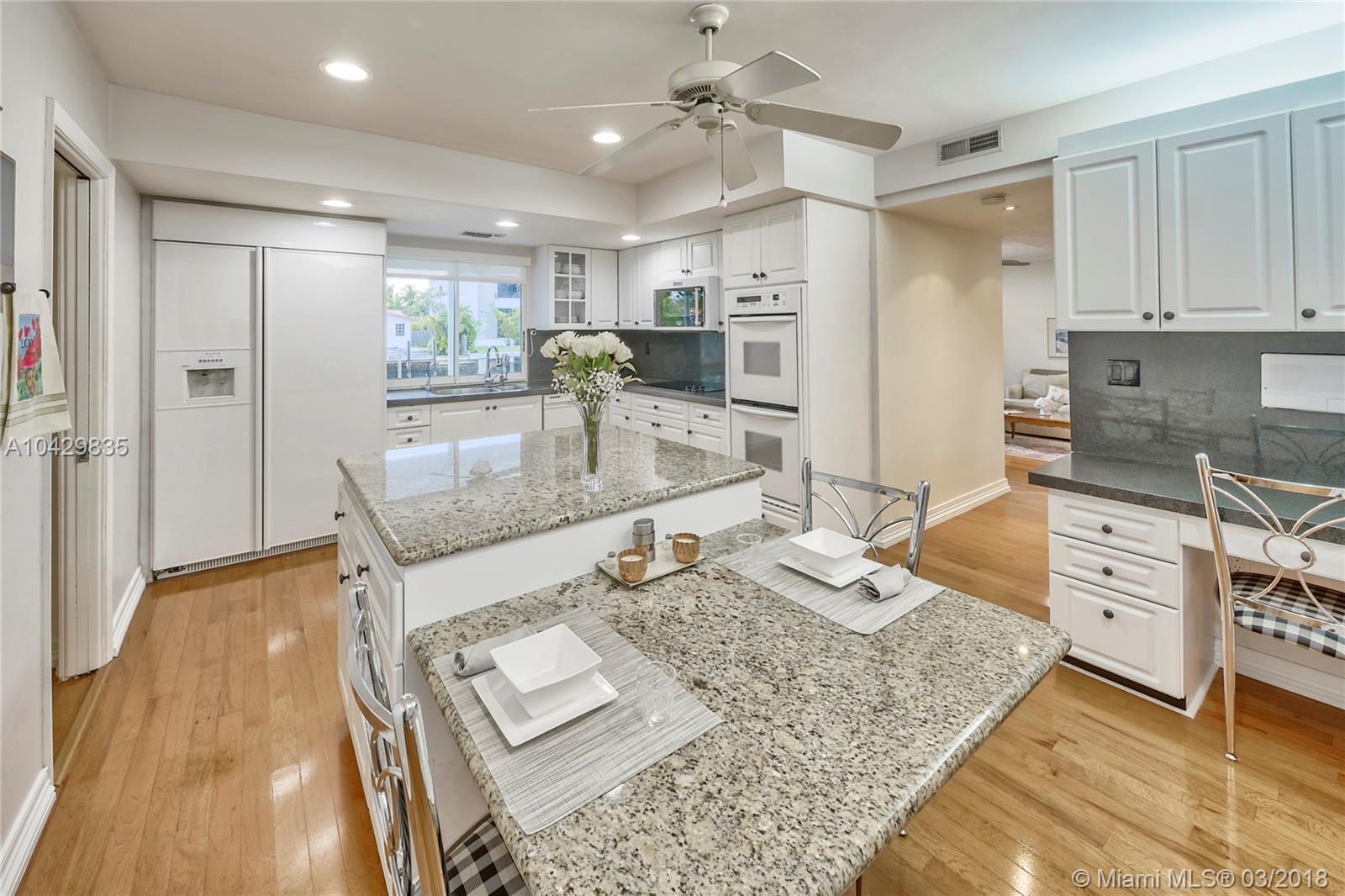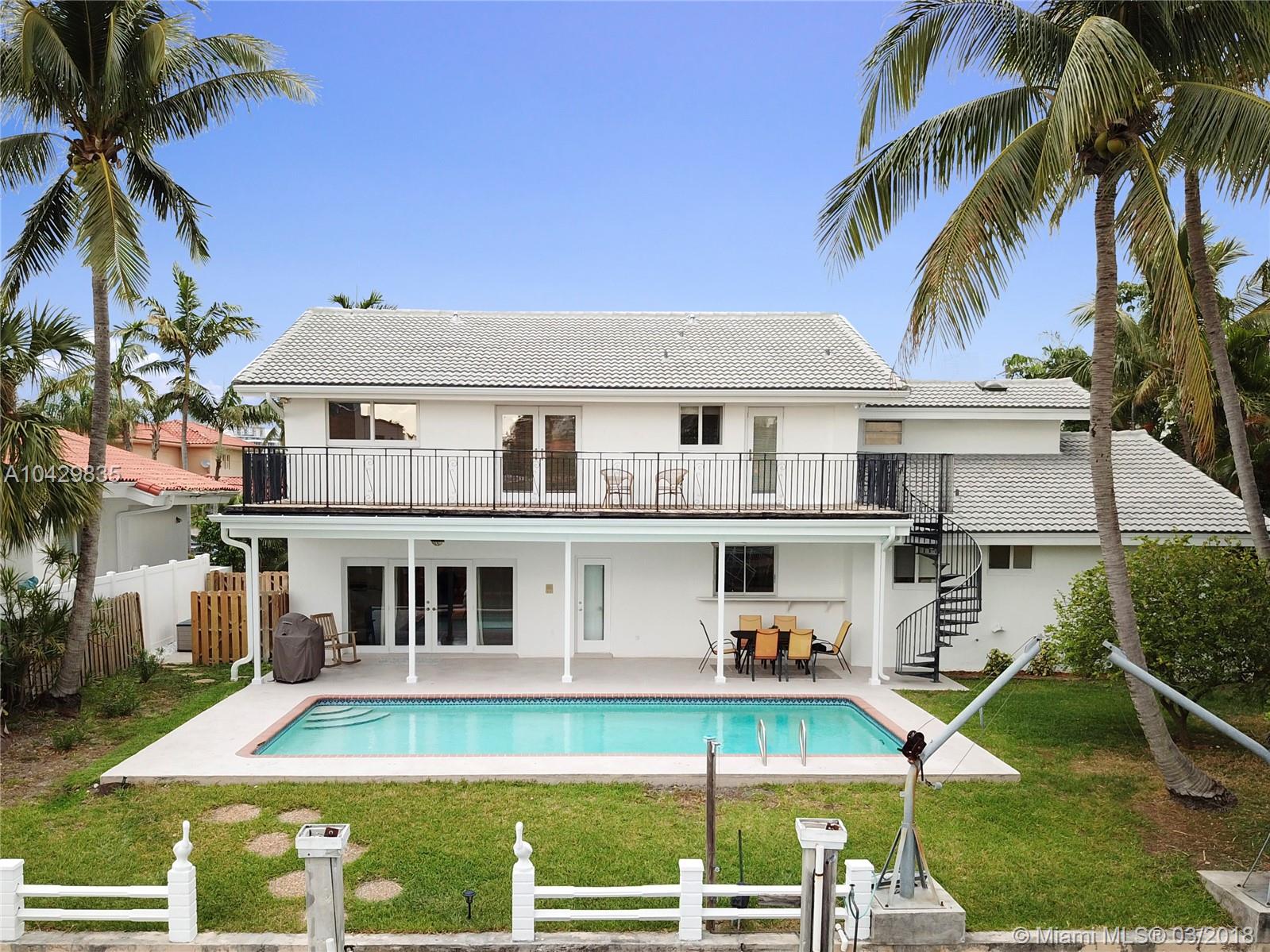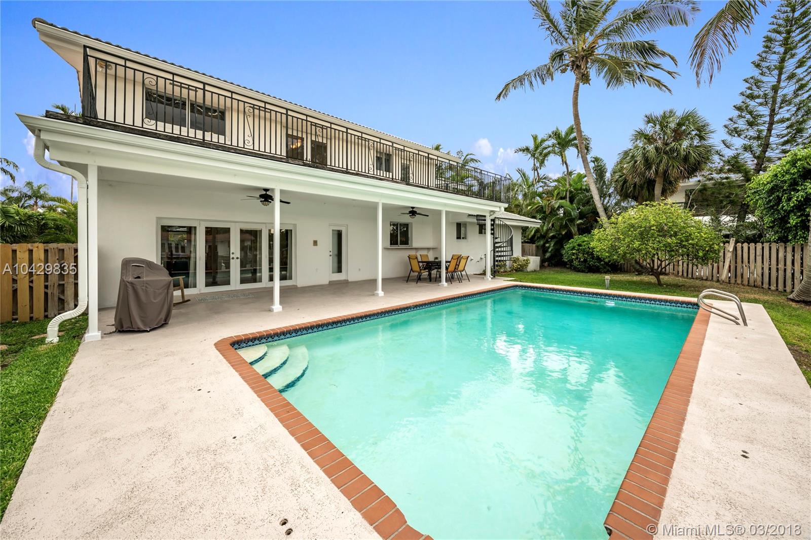 Walk to the beach from this beautiful 5 bed/4 baths waterfront home. 1st floor has foyer entry, guest full bath, living, family, & dining rms. Open kitchen w/granite counters & backsplash overlooking water. Wood flooring. Room w/full bath perfect for in-law/maids quarter. 2nd floor has 4 bedrooms plus an oversized master suite w/large walk-in closet with built-in shelves. Master bath has marble tub & separate shower. Enjoy a large outdoor terrace from 2nd floor bedrooms, with exterior spiral staircase down to pool deck. Covered patio, BBQ area, & swimming pool. 55 ft of water frontage, with newly redone 27 ft wide dock. No fixed bridges to ocean. 2-car garage & circular driveway. Recent upgrades: new roof in 2015, pool pump & filters, & several impact resistant glass windows.