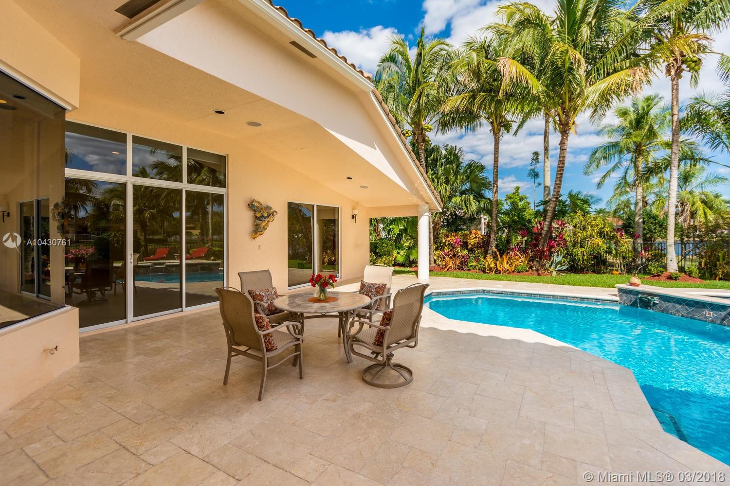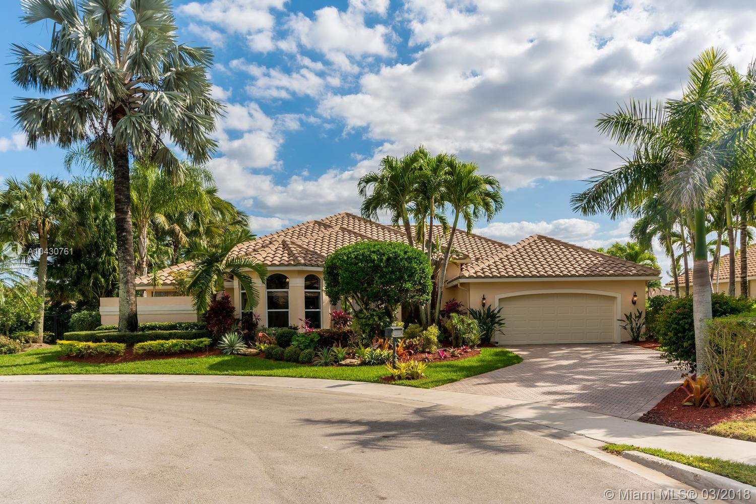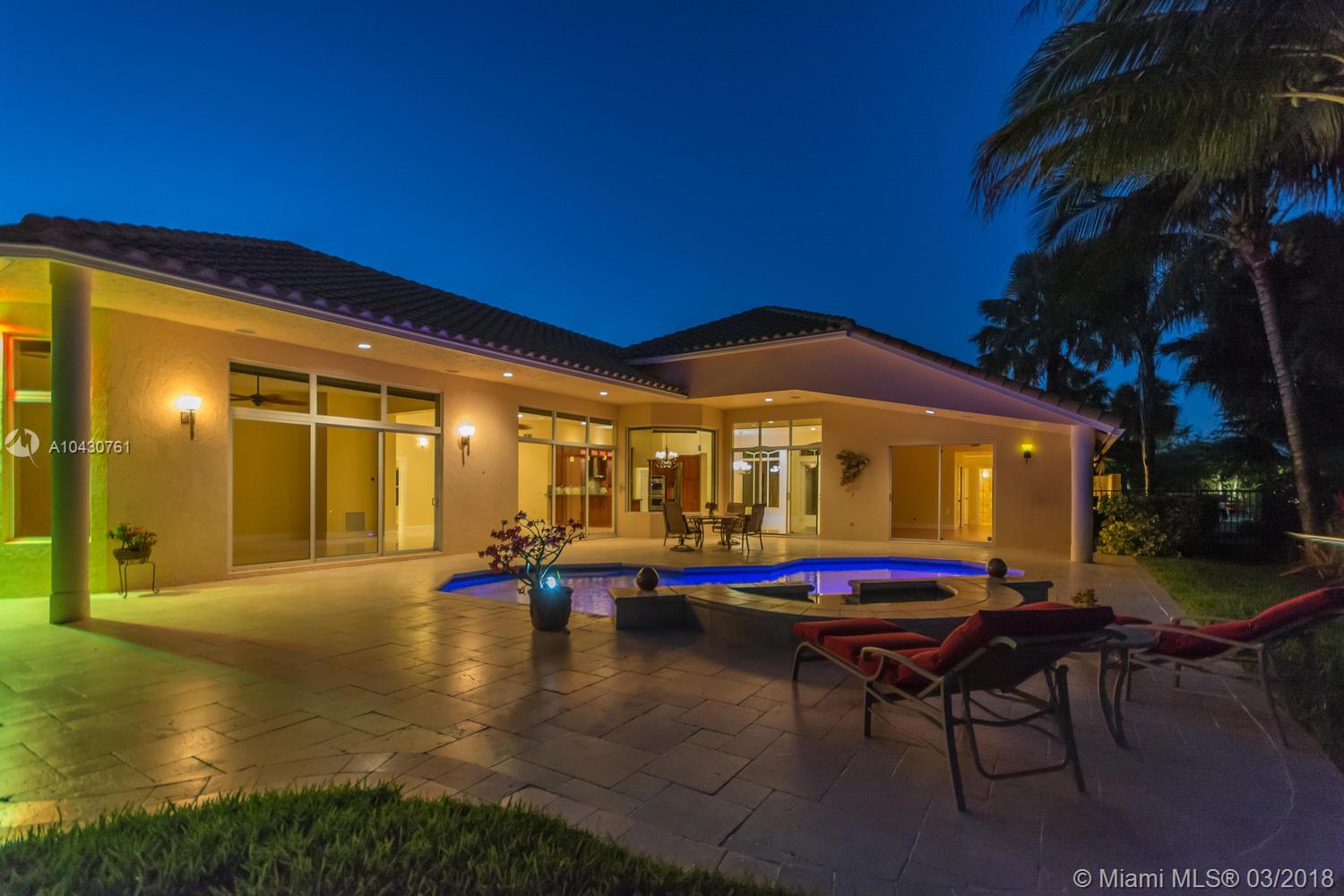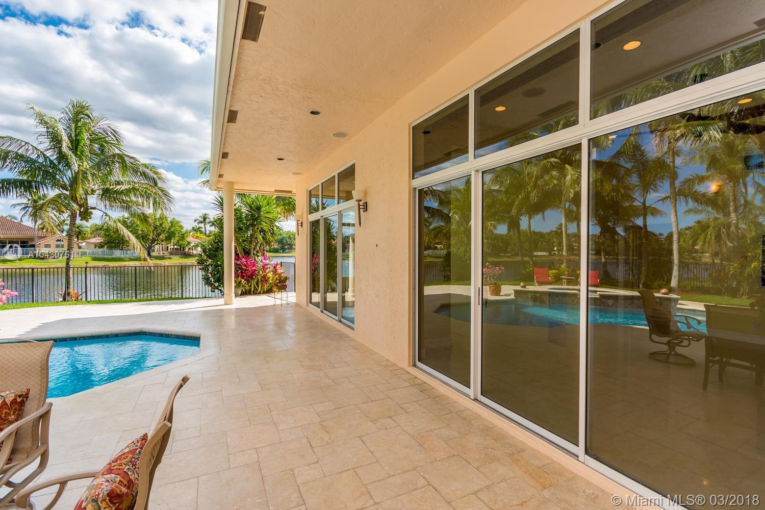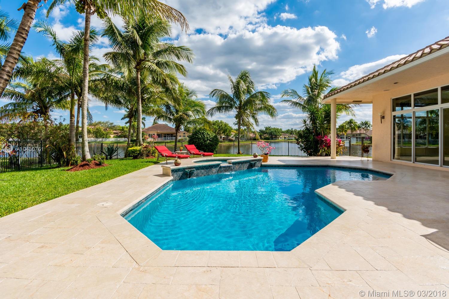 Tastefully upgraded, executive home nestled in the heart of Weston Hills Country Club, featuring a private cul-de-sac location with the best 270-degree water view in the community. Enjoy the mesmerizing sunrise & moon rise from the stunning pool area, boasting a salt pool with French marble designed deck surrounded by lush tropical landscape.This serene oasis features all common areas finished with Jerusalem stone. You will spend many cherished moments preparing gourmet meals in this chef’s kitchen. This home offers many spectacular upgrades including, but not limited to, motorized blinds, piano/pool room, impact windows & doors, master bath adorned with marble and onyx, wood flooring in all the bedrooms and library and a newer roof. Excellent school district & easy access to highways.