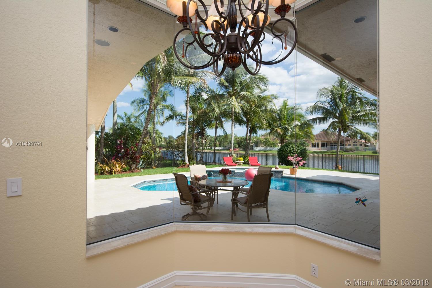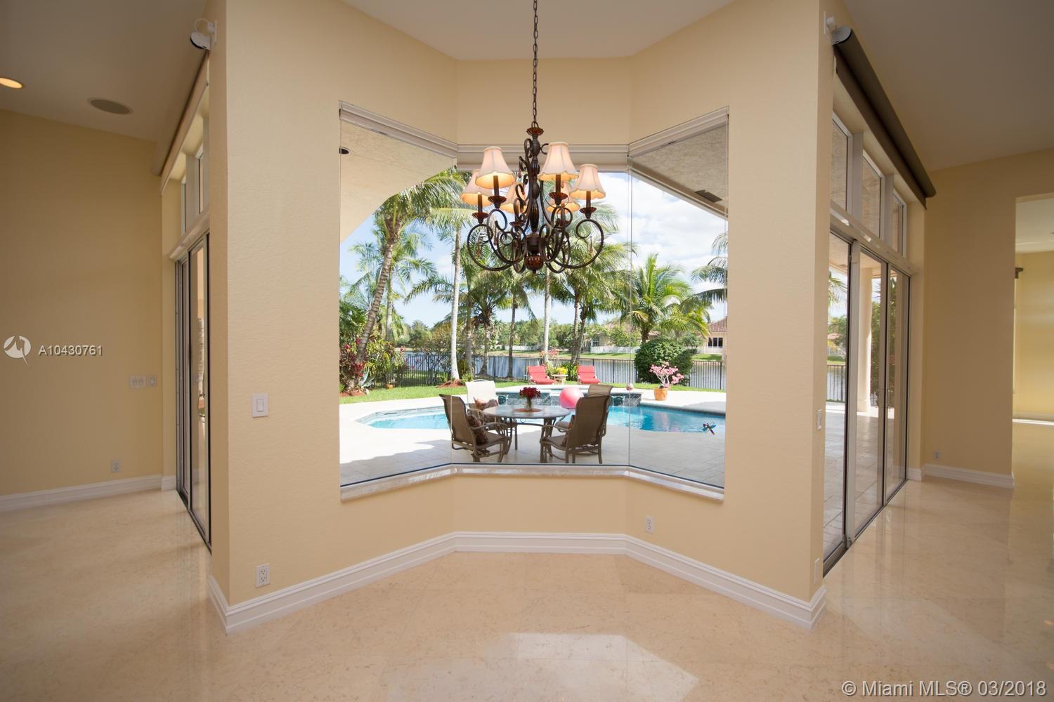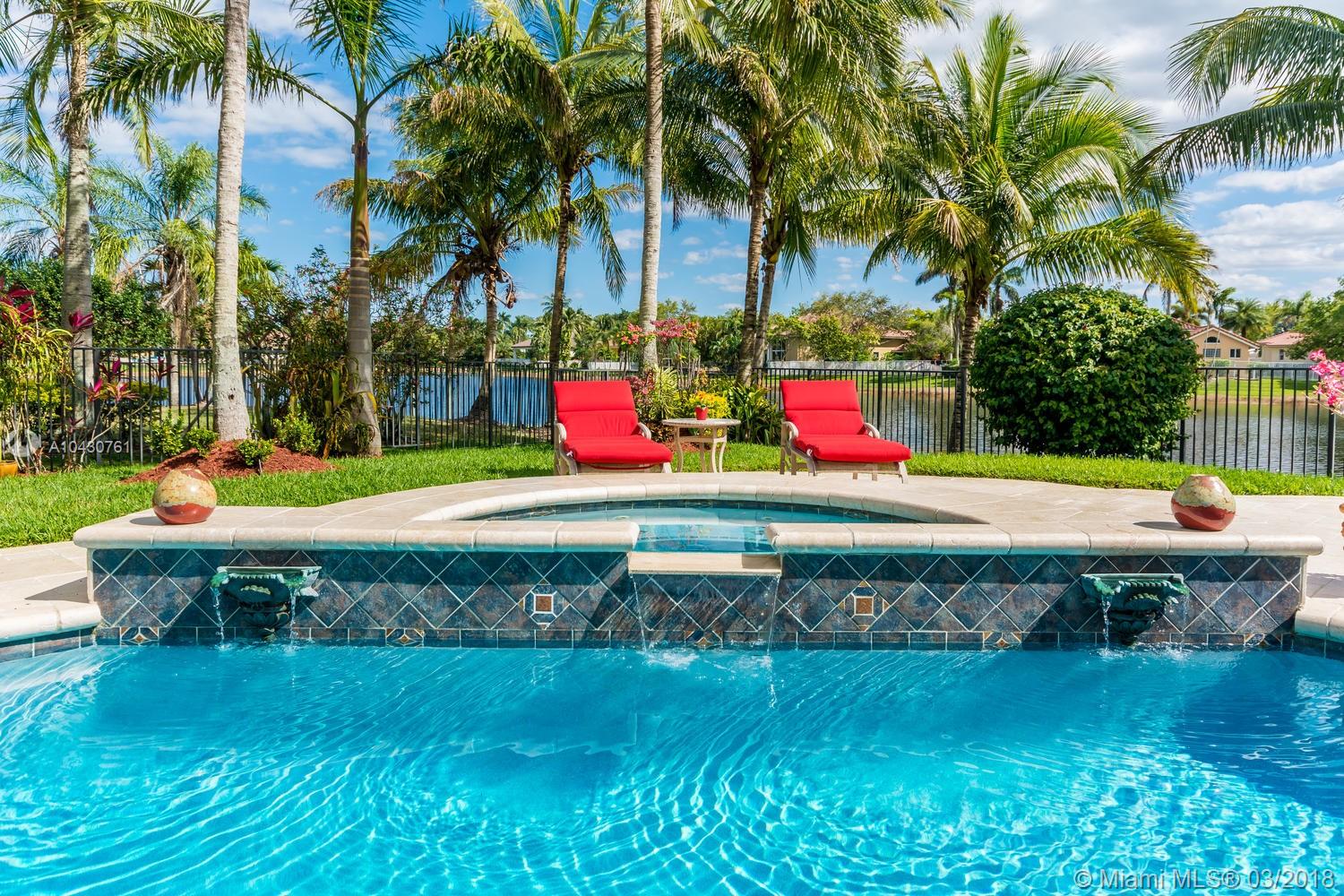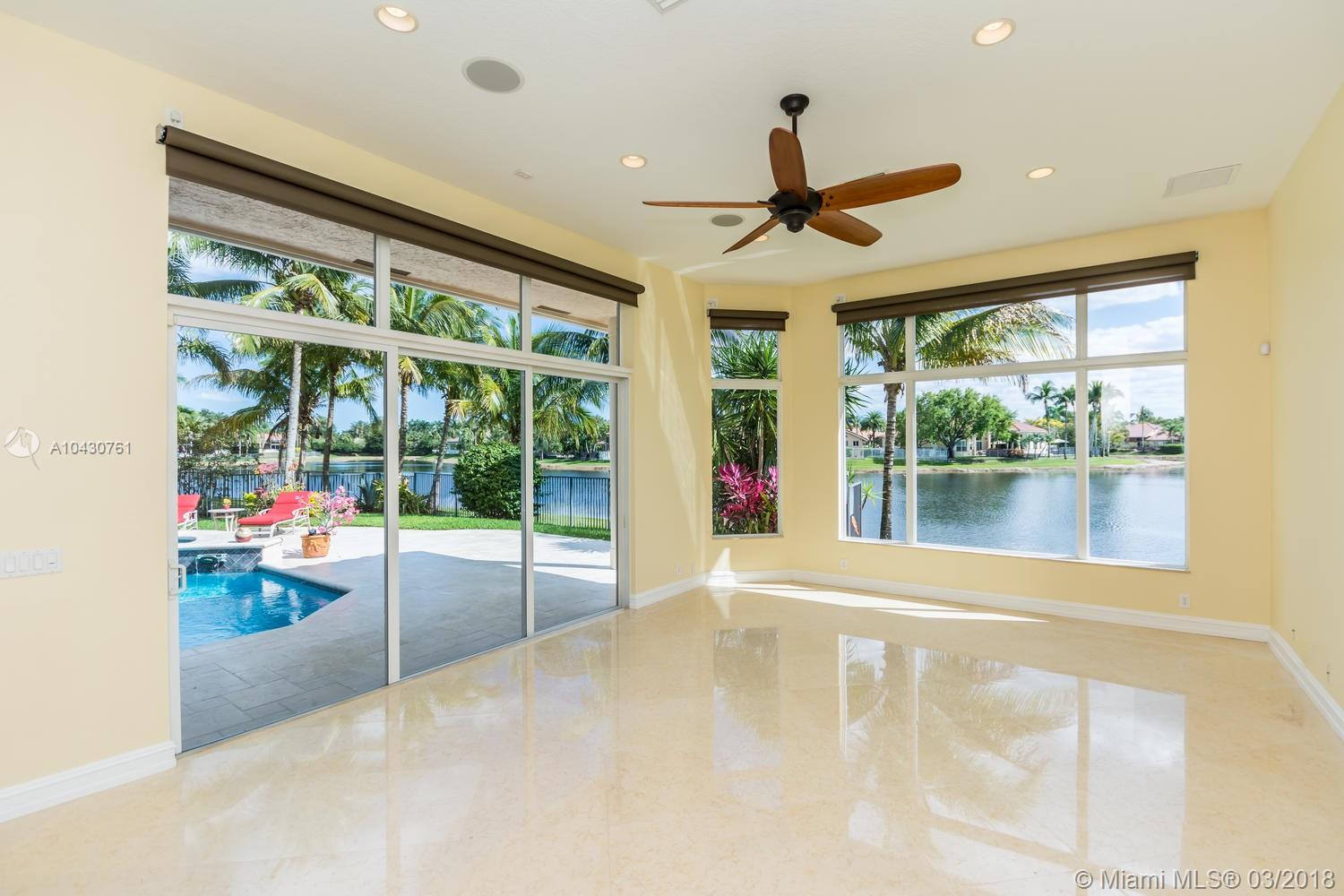 Tastefully upgraded, executive home nestled in the heart of Weston Hills Country Club, featuring a private cul-de-sac location with the best 270-degree water view in the community. Enjoy the mesmerizing sunrise & moon rise from the stunning pool area, boasting a salt pool with French marble designed deck surrounded by lush tropical landscape.This serene oasis features all common areas finished with Jerusalem stone. You will spend many cherished moments preparing gourmet meals in this chef’s kitchen. This home offers many spectacular upgrades including, but not limited to, motorized blinds, piano/pool room, impact windows & doors, master bath adorned with marble and onyx, wood flooring in all the bedrooms and library and a newer roof. Excellent school district & easy access to highways.