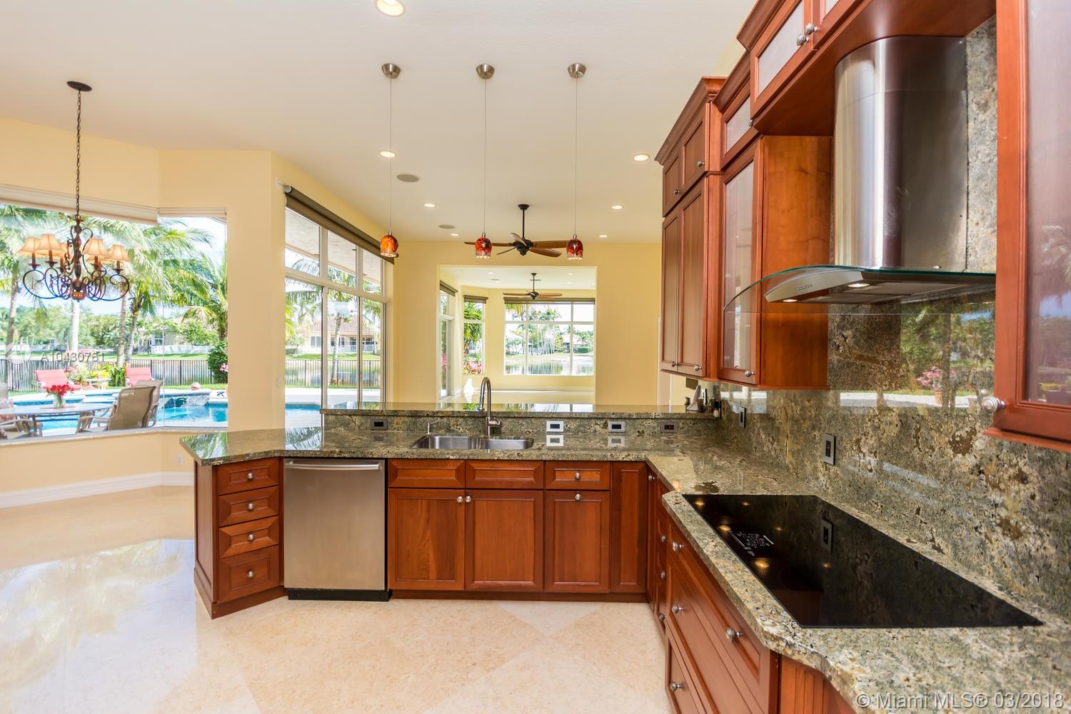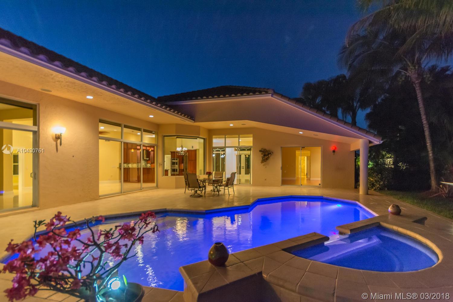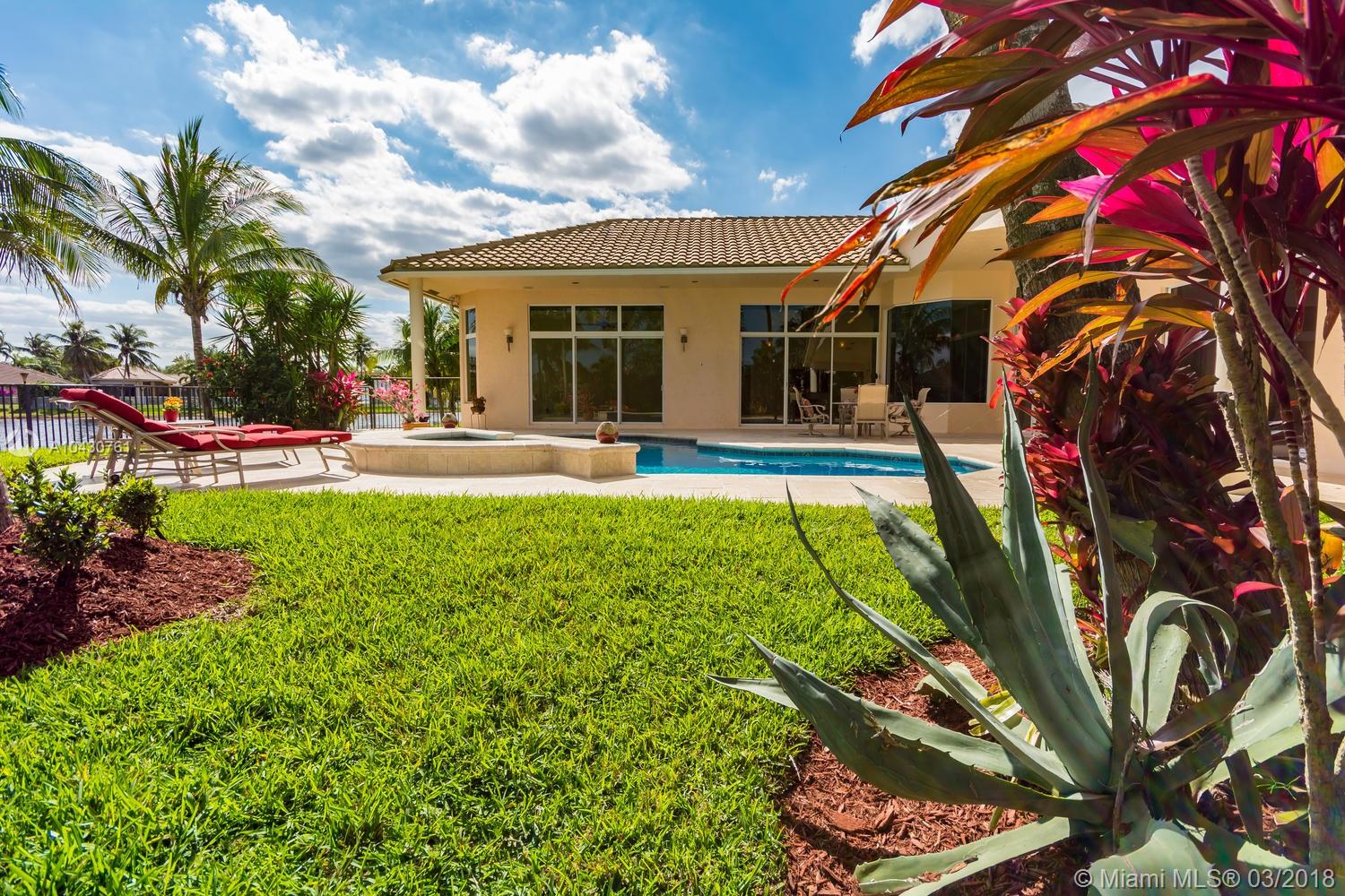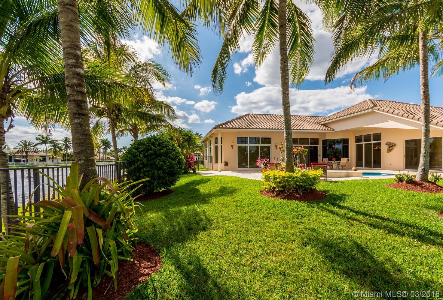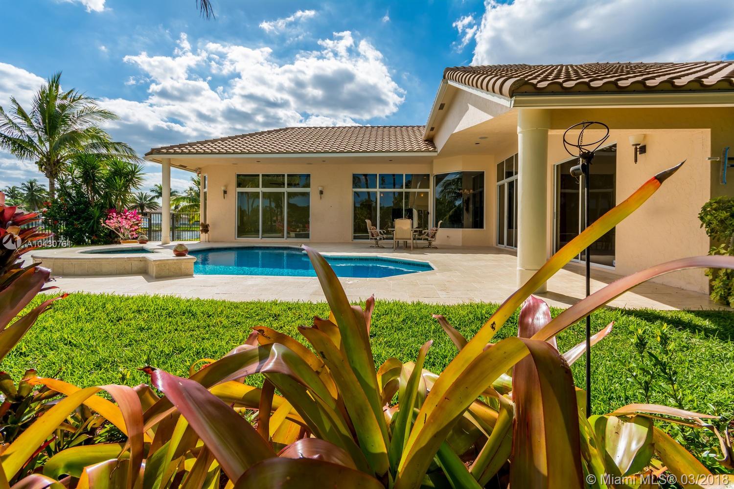 Tastefully upgraded, executive home nestled in the heart of Weston Hills Country Club, featuring a private cul-de-sac location with the best 270-degree water view in the community. Enjoy the mesmerizing sunrise & moon rise from the stunning pool area, boasting a salt pool with French marble designed deck surrounded by lush tropical landscape.This serene oasis features all common areas finished with Jerusalem stone. You will spend many cherished moments preparing gourmet meals in this chef’s kitchen. This home offers many spectacular upgrades including, but not limited to, motorized blinds, piano/pool room, impact windows & doors, master bath adorned with marble and onyx, wood flooring in all the bedrooms and library and a newer roof. Excellent school district & easy access to highways.