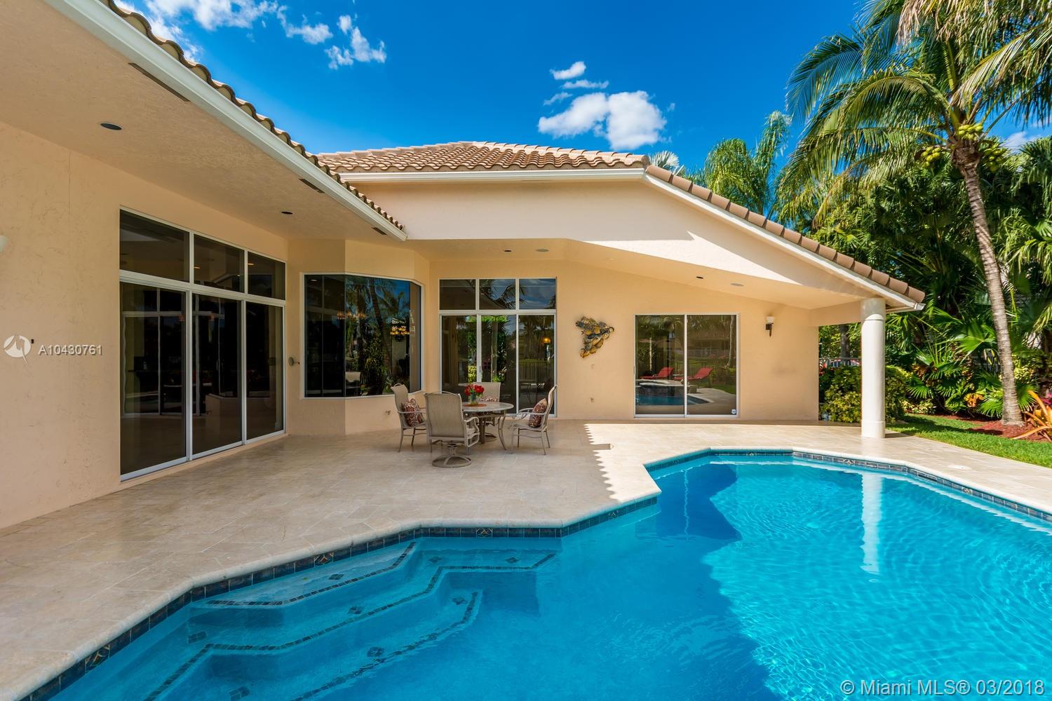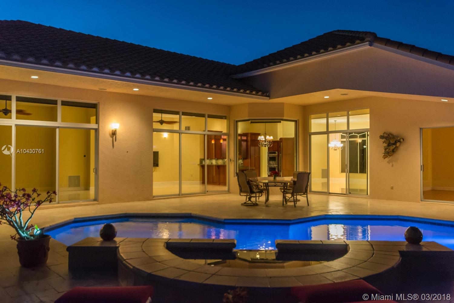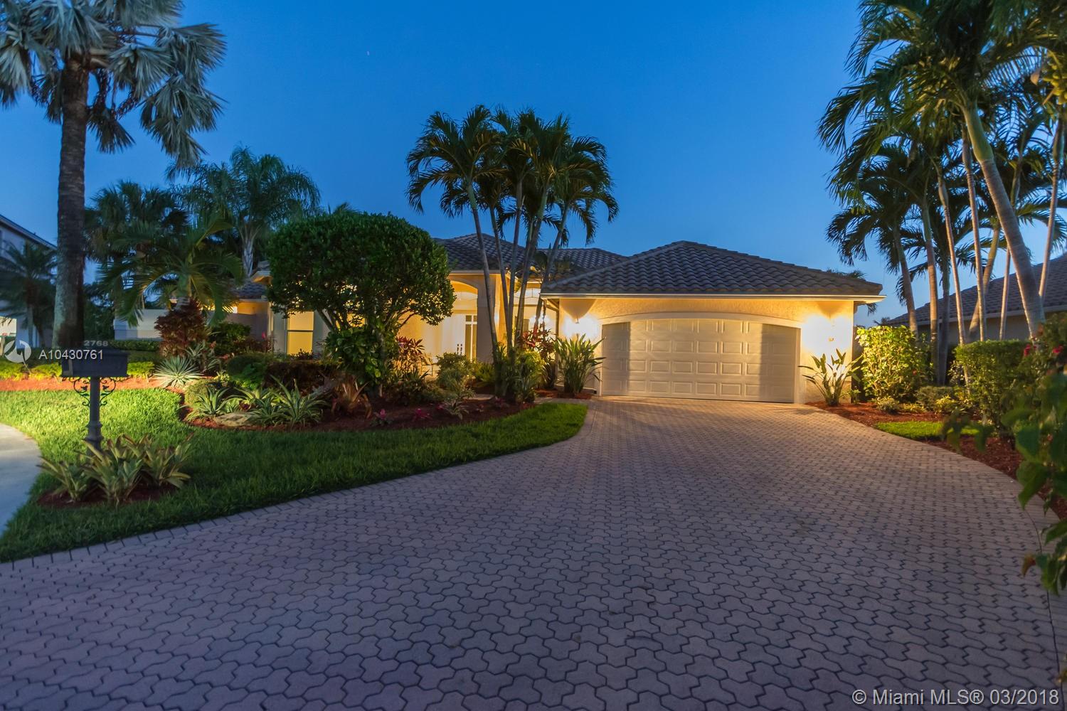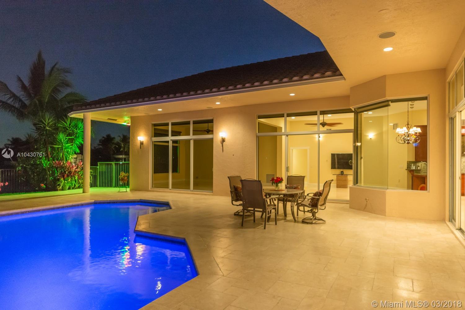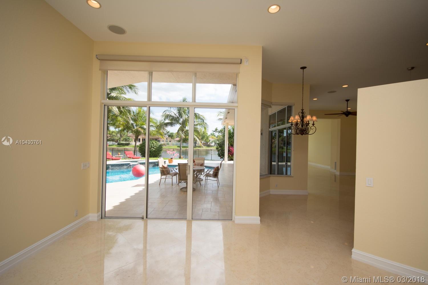 Tastefully upgraded, executive home nestled in the heart of Weston Hills Country Club, featuring a private cul-de-sac location with the best 270-degree water view in the community. Enjoy the mesmerizing sunrise & moon rise from the stunning pool area, boasting a salt pool with French marble designed deck surrounded by lush tropical landscape.This serene oasis features all common areas finished with Jerusalem stone. You will spend many cherished moments preparing gourmet meals in this chef’s kitchen. This home offers many spectacular upgrades including, but not limited to, motorized blinds, piano/pool room, impact windows & doors, master bath adorned with marble and onyx, wood flooring in all the bedrooms and library and a newer roof. Excellent school district & easy access to highways.