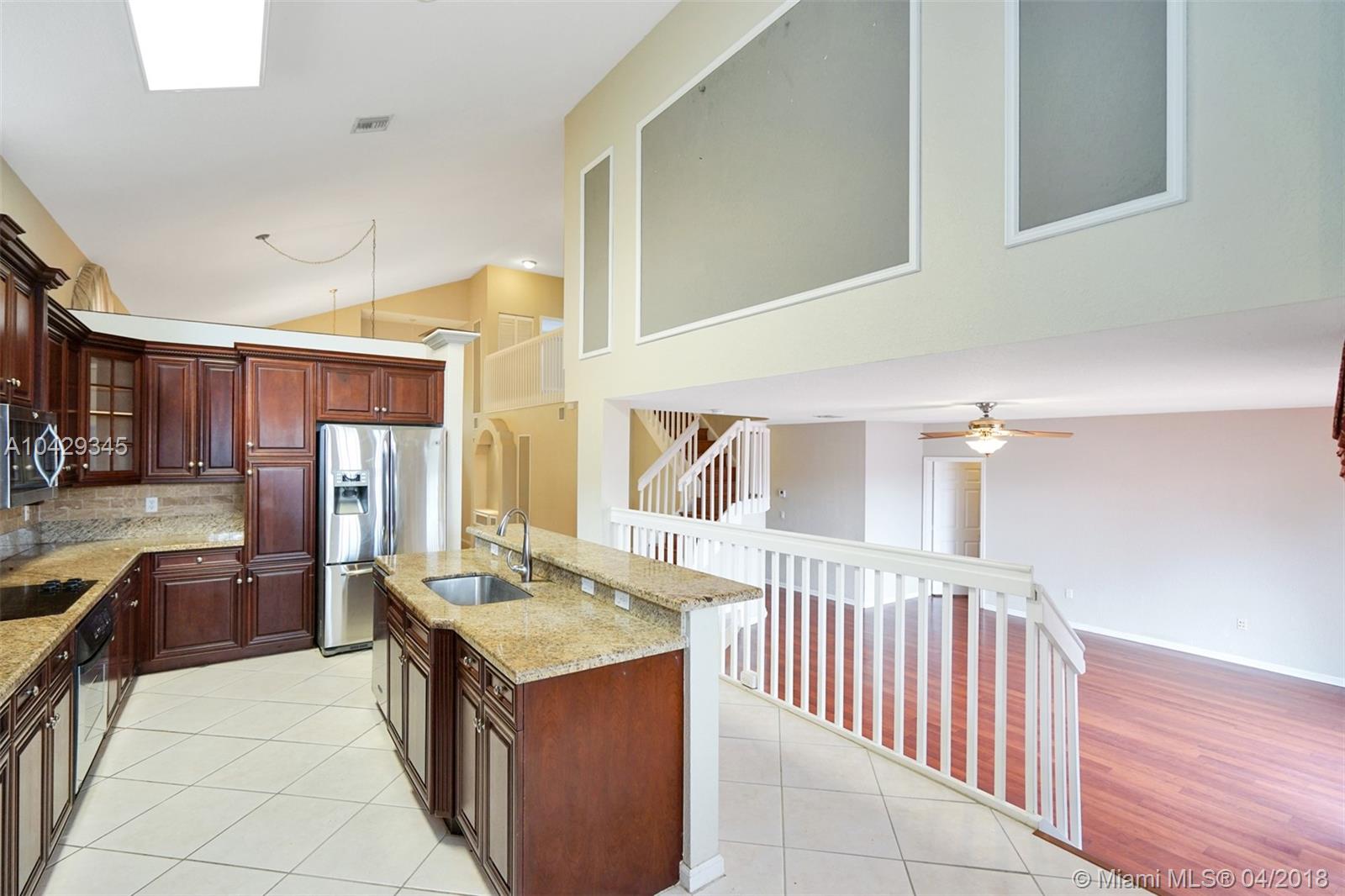 This is "The Best" Deal at Miramar's premiere "Rivera Isles" community, the perfect setting at the right price! With large & inviting living spaces, high ceilings & unique architectural features. As you enter, you are greeted by soothing, all porcelain, neutral tile floors. A few steps from the living room you will find the raised dining area & tastefully updated open concept kitchen in rich wood, granite counters and a stainless steel appliance package. A cozy breakfast nook overlooking the lake & back-yard await you each day. This model offers a bedroom with a full bath downstairs & laundry room. A beautiful staircase leads to the grand master bedroom featuring a separate sitting area or office space. Build your own pool in the oversize fenced lot, what are you waiting for?