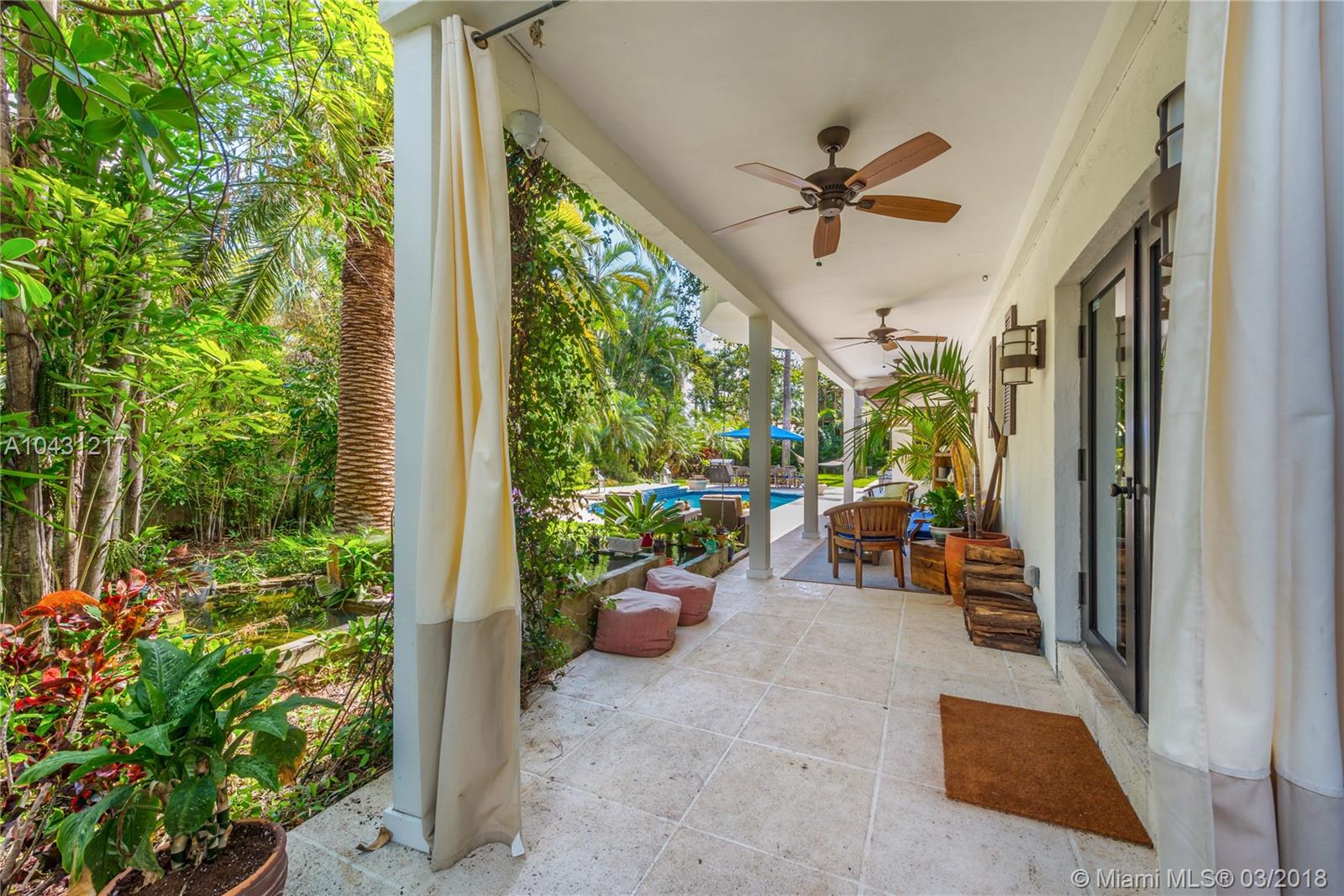 Enjoy living in a lush tropical paradise in the heart of Miami Beach! This 5 bed 5.5 bath home sits on an oversized 11,336 SqFt corner lot with surrounding wall/gate offering utmost privacy and plenty of parking. Fully renovated this home features a gourmet kitchen with professional grade Thermador appliances, hurricane impact windows and doors, and marble and wood floors. Open living area is surrounded by French doors creating seamless flow for indoor/outdoor entertaining. Large master suite offers custom cabinetry and walk-in closet and is completed by a spa-like master bath with double sinks, rainfall shower, and soaking tub. Dine al-fresco on the 2nd floor balcony overlooking your sparkling saltwater/solar heated pool or relax next to a tranquil Zen water garden.