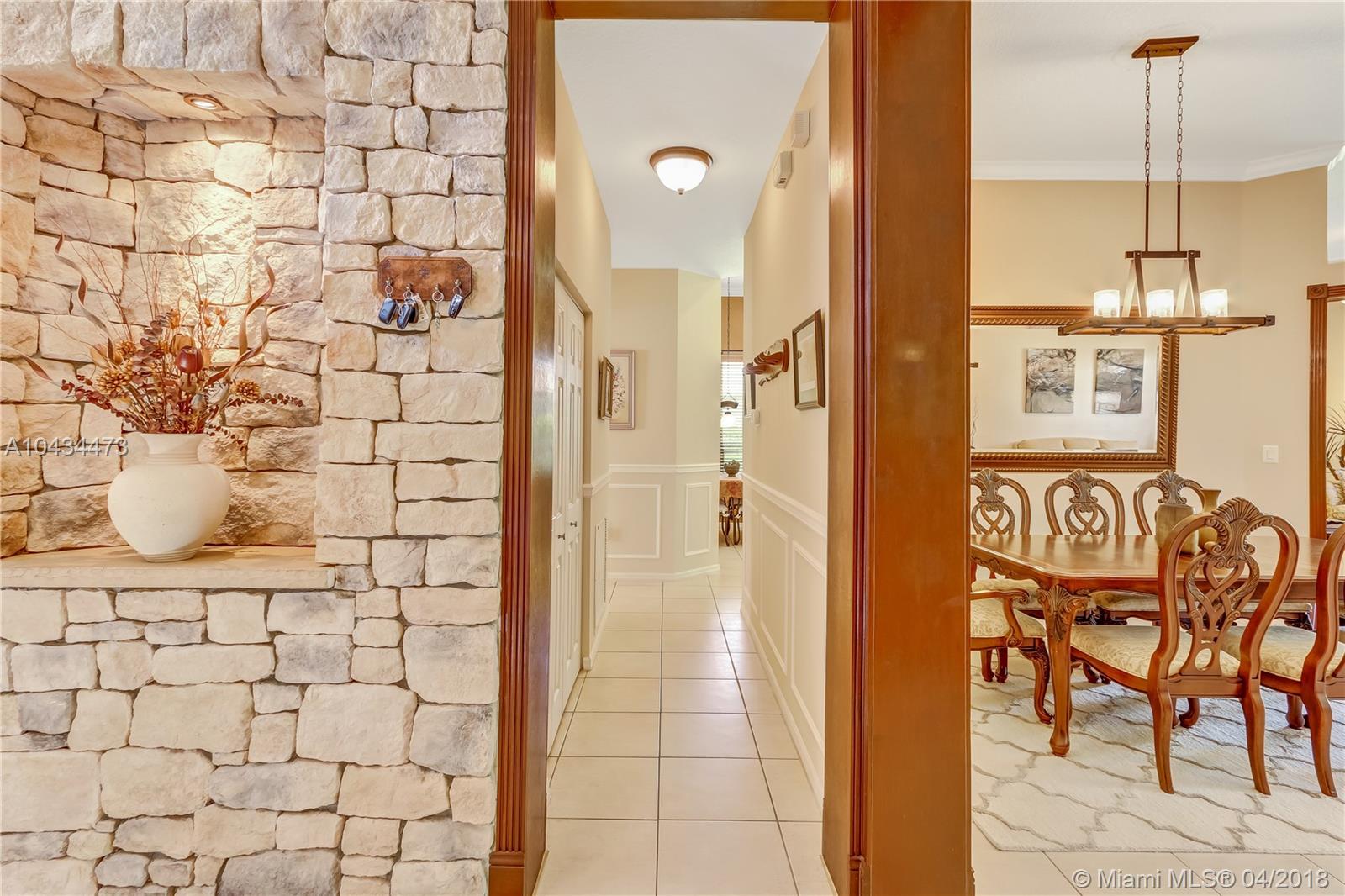 Lovely pool house in a beautiful and prestigious guard-gated community. 4 beds w/3 full baths with crown moldings, ceramic and laminated floors throughout; split plan w/big master suite, custom upgraded kitchen, baths, and more. Profesional landscaping, spacious laundry/utility room next to oversized 2 car garage. kitchen/breakfast area open to spacious family room, all looking out over your own private, sparkling pool oasis with waterfall. Backyard/patio next to the lake perfect for parties and BBQs! Updated & elegant. Resort-like community amenities and great schools close to the property. You have to see it!!! Come, make this model house your home!