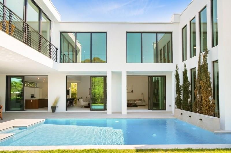 Stunning modern masterpiece with unparalleled custom finishes is now complete & ready for occupancy! Expansive open spaces blended with floor-to-ceiling impact glass fills the home with natural sunlight. Huge open great room w/ soaring 20' ceilings & 3 sets of sliders opening seamlessly to a private pool/patio/garden area. Sleek chefs kitchen featuring dual islands, Italian cabinetry & quartz counters. 3 generous sized en-suite guest rooms & over-sized master suite w/ sumptuous spa-like bathroom.