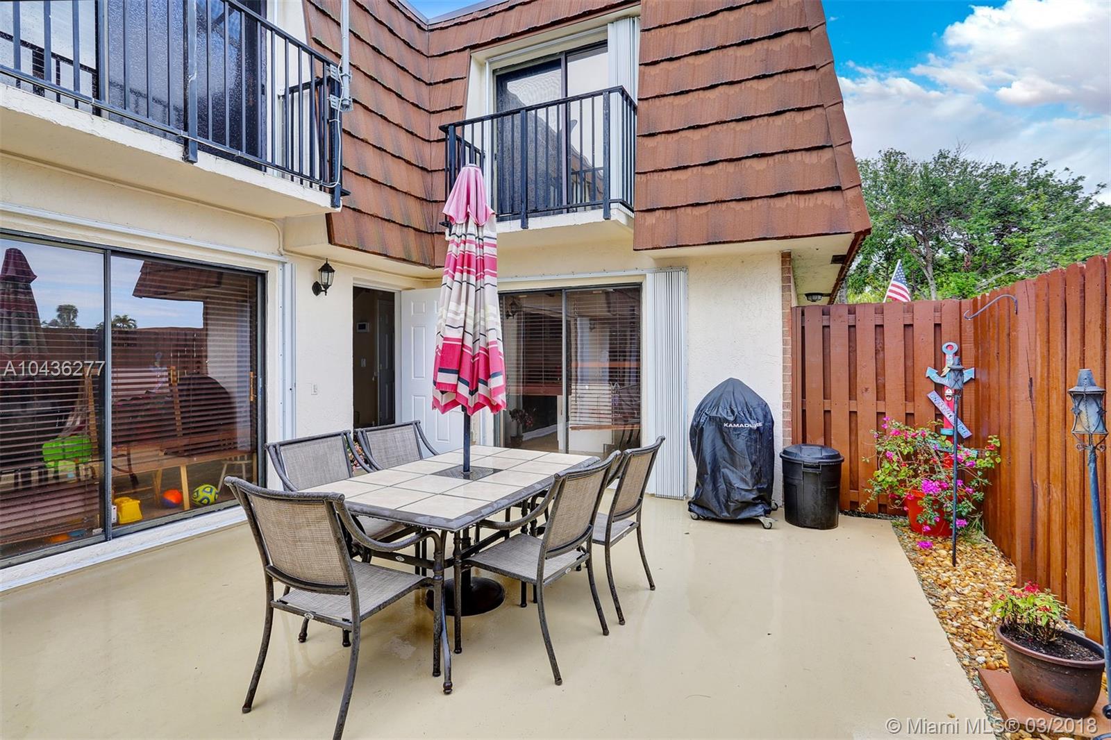 Welcome home to this magnificent townhome. Located in a sought-after community and minutes from major highways. This lakefront property conveniently features one bedroom downstairs with french doors that could be used as an office or a den. Beautifully updated kitchen, large Living room with lake views, tile floors throughout, all remodeled bathrooms, 2nd floors is all concrete and tiled throughout, large Master Bedroom with its own balcony and fantastic forever views of the lake. Stunning remodeled Master Bathroom, accordion shutters, freshly painted large fenced patio . This townhome is an A+ and will not last!