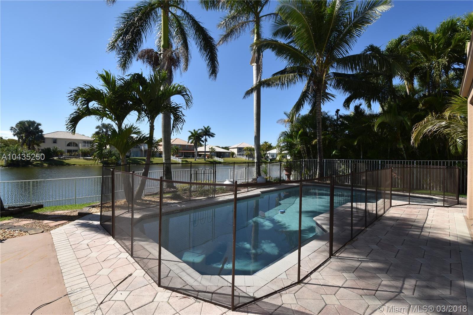 The perfect home has finally hit the market! Located in the heart of West Broward, this 6 bedroom 3.5 bath offers it all. One full bedroom and cabana bathroom situated on ground floor suits in-laws and guests perfectly. Generous flow from kitchen into living room provides great sense of entertainment. Master bedroom with balcony is located upstairs and extends into 6th bedroom which is perfect for office, loft area or full bedroom. Travertine flooring on ground floor and wood/carpet upstairs. Exterior provides an expansive screened-in patio along side a wet bar with built-in grill. West exposure in backyard allows enjoyment of sunsets with a pool that overlooks a beautiful lake. Pool is equipped with child safety gate. Nestled in Sandal Cove of Pembroke Shores with 24-Guarded gate.