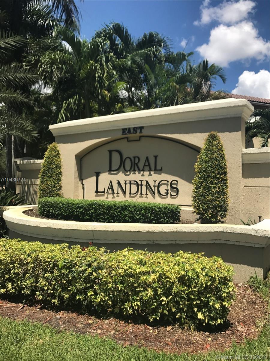 Desirable & Attractive 3/2 Corner Lot, single story home in Doral Landings East. Large kitchen & bathrooms recently updated with lovely large patio & one car garage attached parking. The home is spacious with high ceilings & large windows throughout. Two additional car spaces available in driveway with additional visitor spaces conveniently located walking distance around the corner from the house. Don't miss this opportunity to live in one of the most sought after properties in the City of Doral near A-Division schools and beautiful recreational parks. Community has pool and kids playground. Security 24 hours. Move in Ready!
