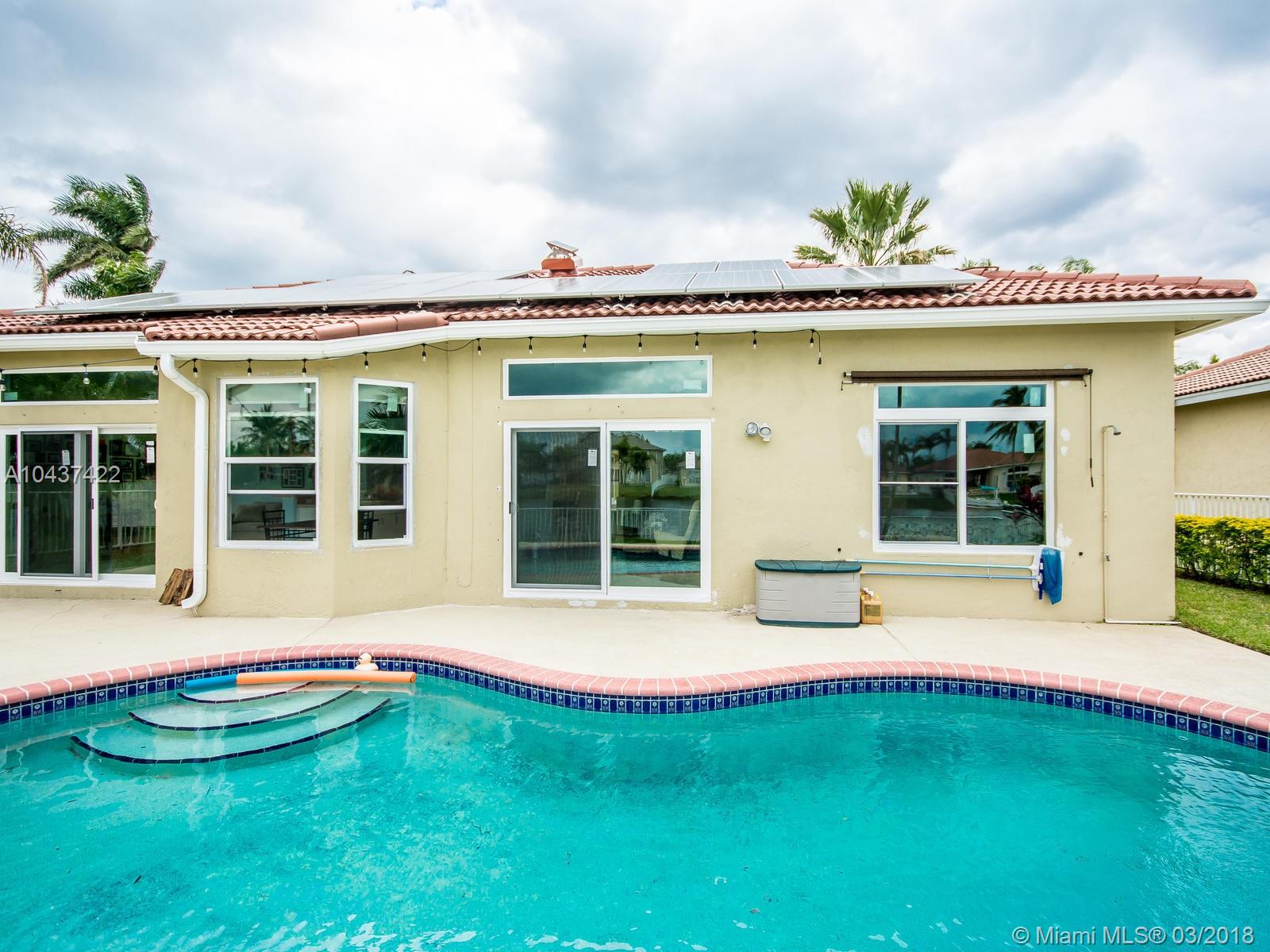 Imagine NOT paying for ELECTRICITY ever and having FPL pay you for the energy you create and don’t use in a given month. Well this very nice pool and lake front home has recently been equipped with a GREEN NRG Solar power electricity generating system which could provide all the power you could use and then sell off the extra to FPL. But wait there more, this home was just fitted with brand-new hurricane impact window and doors to add to the energy efficiency and provide quiet and pace of mind. The home sits in a very well desired community, guarded gate, very large lake and ready for your creativity in the garden and back yard. Fenced pool area and jacuzzi spa makes for great backyard BBQ and quality family times afternoons.