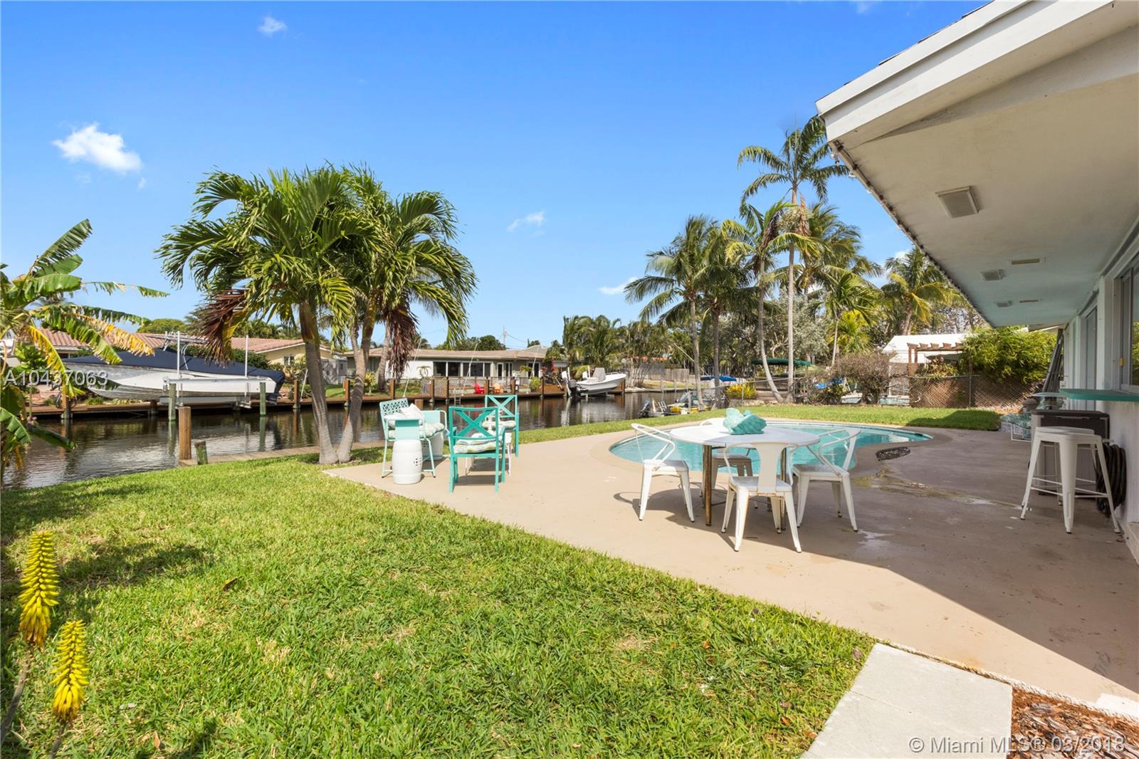 Cool Mid Century Modern home in Fantastic Condition w/ 75 Feet of Open Water Ocean Access, Gorgeous Wide Canal Views and a new 20 Ft Dock, Pilings and Refurbished Sea Wall! MANY UPGRADES Including: New Roof in '14, Sprinkler System in '16, A/C, Electric Panel, Fence, Water Heater, Cook top, Plumbing Supply Line, Washer/Dryer, Pool Equipment, Wood Laminate Flooring, Landscaping and much more! Open Floor Plan, Spacious Backyard with Kitchen Window Pass Through. Walk to Pine Crest School & Broward Health Imperial Point. Minutes to Imperial Point Library, Whole Foods, Great Shopping and Restaurants, Holy Cross Hospital, Coral Ridge Country Club, I-95, US 1, Commercial Blvd, and THE BEACH! Great Investment Opportunity, Rental Property, 1031 Exchange, or possible flip!