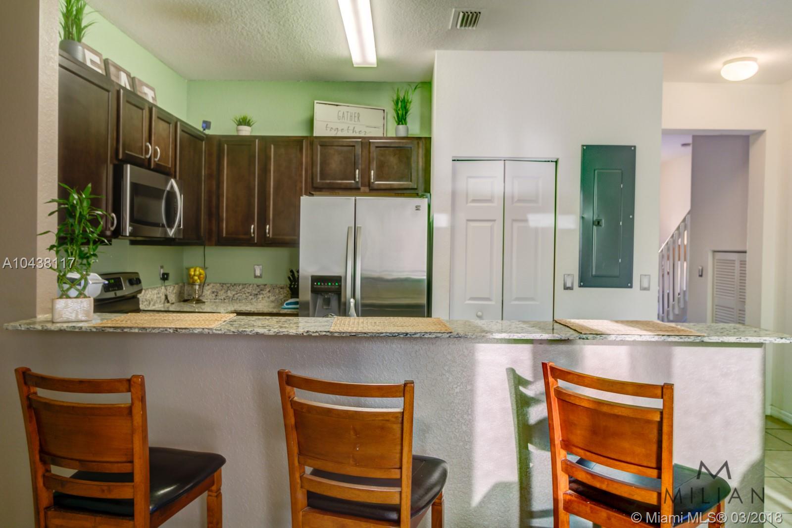 Spacious CAYMAN Model, Two-story, 3 bedroom 2.5 bathroom townhome located in the beautiful development "VILLAGE WALK". OPEN UPDATED KITCHEN with granite counter tops and stainless steel appliances. Washer and Dryer in the second floor, ceramic flooring through the entire first floor. Kitchen sliding door opens to an open courtyard where kids and pets can play. Village Walk is a very recent development (2014) that features a Secured Gated Entrance, Clubhouse with Pool and Sundeck, very convenient to I-75, I-95 and the Florida Turnpike.