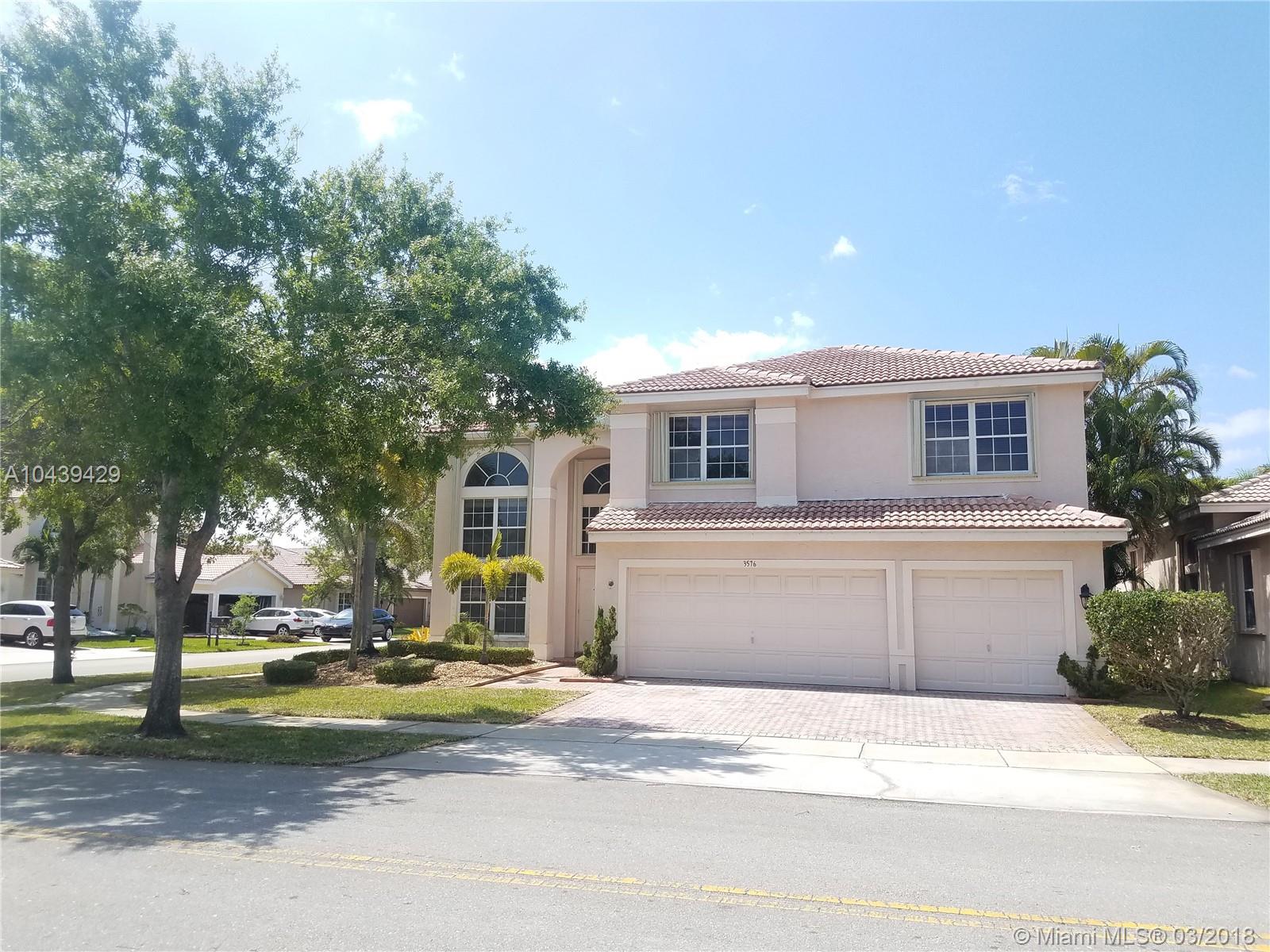 IMMACULATE 5/3 TWO STORY SINGLE FAMILY HOME AT DESIRABLE SILVER LAKES @ MIRAMAR!! RECENTLY PAINTED! EXCELLENT CONDITION!! TILE THROUGHOUT FIRST FLOOR AND WOOD FLOORS IN SECOND. CONVENIENT BEDROOM WITH FULL BATHROOM IN THE FIRST FLOOR. GREAT LAYOUT! TOO MANY EXTRAS!! VAULTED CEILINGS! HUGE FAMILY ROOM WITH VIEW OF THE BEAUTIFUL PATIO WITH POOL AND FOUNTAIN! CORNER LOT! EXTRA DEN IN THE SECOND FLOOR, 2 A/C UNITS, LAUNDRY ROOM, 3 CAR GARAGE AND MUCH MORE! PLENTY OF LIGHT! GATED COMMUNITY WITH GUARD AND SECURITY PATROL. BLOCKS TO I-75, TURNPIKE. 15 MINUTES TO DOLPHIN MALL AND SAWGRASS MALL. 30 MINUTES TO THE BEACH! GREAT SCHOOLS, EXCELLENT LOCATION! RESTAURANTS, BANKS, MALLS AND MORE!