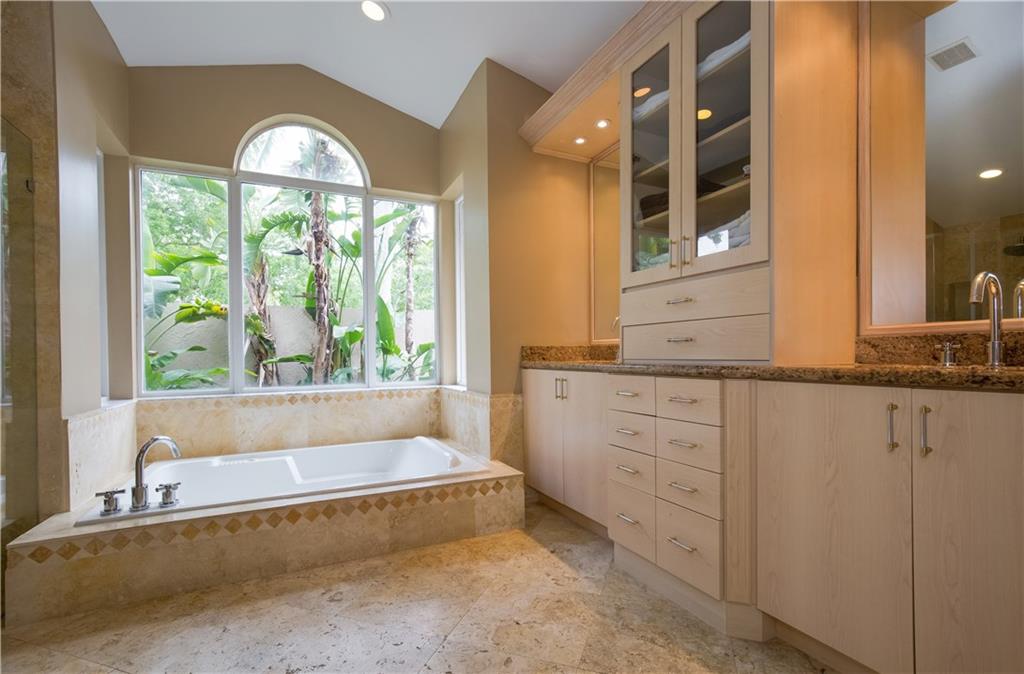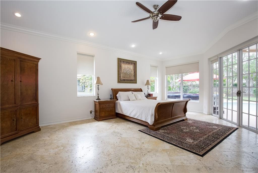 GORGEOUS ONE STORY HOME IN GUARD GATED COMMUNITY! YOU WILL BE AMAZED WITH THE SOARING CEILINGS, BRIGHT & OPEN W/NATURAL LIGHT. GOURMET KITCHEN WITH GRANITE COUNTERTOPS, SS APPLIANCES, CENTER ISLAND & LARGE SNACK BAR. GORGEOUS WOOD FLOORING IN THE MAIN LIVING AREAS. MASTER FEATURES TRAVERTINE FLOORING, UPDATED BATH W/FRAMELESS SHOWER. FRENCH DOORS LEAD OUT TO FENCED IN HUGE BACKYARD W/COVERED SITTING AREA & OVERSIZED SALT WATER POOL. HOME IS LOCATED ON QUIET STREET W/NO THRU TRAFFIC. ROOF IS 5 YEARS OLD.