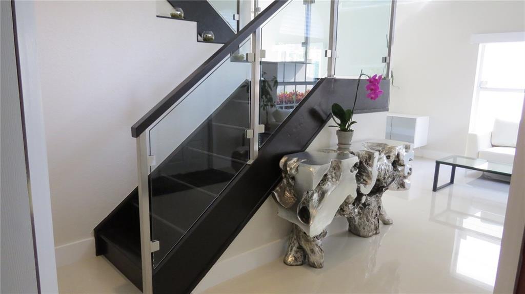 Beautiful contemporary home remodeled with top of the line finishes. Features include a neutral decor, 31" porcelain tile and dark bamboo flooring, remote control Hunter Douglas Silhouettes & a stunning glass & Stainless steel staircase !! The kitchen offer 42" high gloss wood cabinets, SS back splash & kick plate, white quartz counter top, high end SS appliances ! Accordion shutters located on a tropically landscaped lot !! Must see it to believe it, you will fall in love with this house the 4th bedroom has been converted in a office
