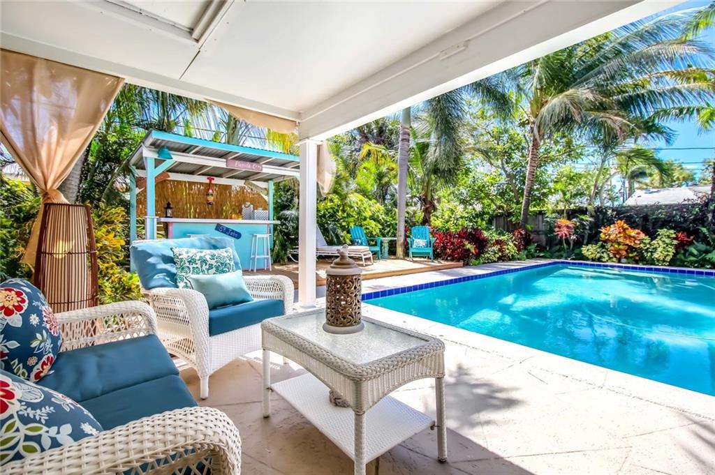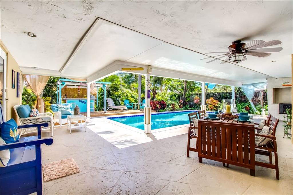 Paradise Found! Beautifully remodeled home with stunning backyard, perfect for the SoFla lifestyle. Feel like you are on vacation every day with the private mature lush landscaping including exotic Palm Trees and pristine pool. Tiki Bar. Covered patio for extended outdoor living. New S tile roof 2015, High Impact windows and doors including high end Rain Front door. Kitchen with large island perfect for entertaining and family gatherings. Porcelain wood look tile and newly restored vintage terrazzo.