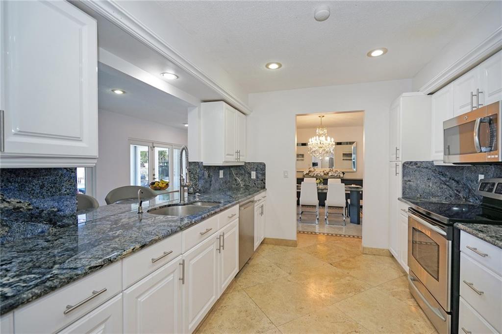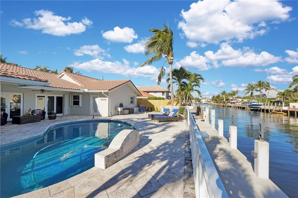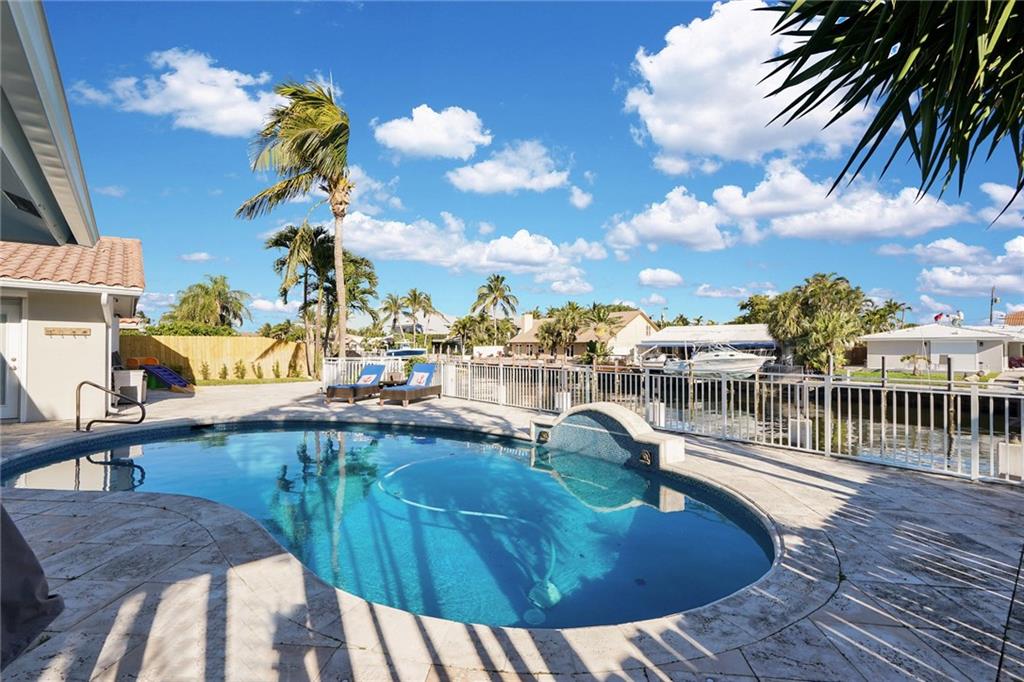 Spectacular 3 bedroom 2.5 bath waterfront home in the desirable community of Bermuda Riviera. Bayview Elementary school district! Bright and open floorpan, beautiful marble floors throughout, updated kitchen with white shaker cabinetry and stainless steel appliances, vaulted ceilings in the living room, updated baths, accordion shutters, 2 car garage and more! Fantastic backyard with pool, covered patio and tranquil water views. Newer concrete dock and seawall! This home is a must see!
