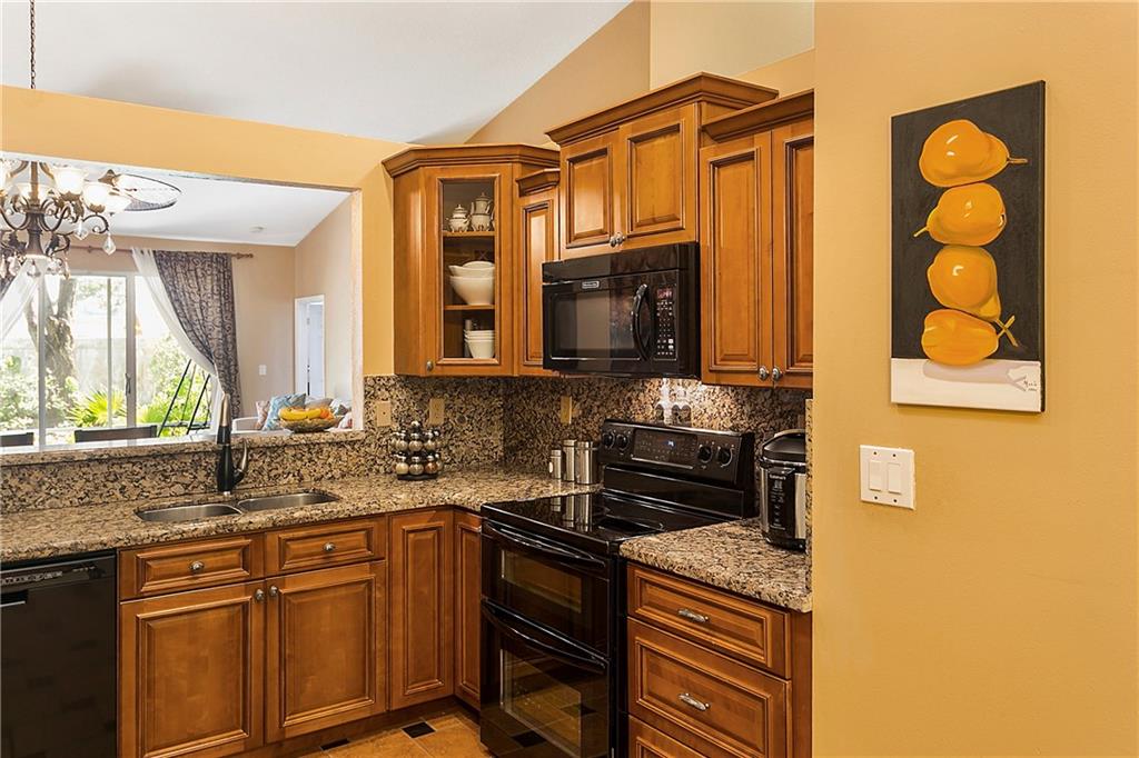 Absolutely gorgeous!! Updated home located in a secure gated community. This beautiful home has over $75,000 in upgrades from rich cherry wood cabinetry, granite counter tops, Premium KitchenAid appliances, Custom designed master and guest bath rooms, New floor tiles, newer ac, ceiling fans, custom flooring in bedrooms, Bahama shutters in Mstr Bedroom, screen porch, 2 car garage, separate laundry room w newer washer & dryer, and a beautifully landscaped exterior. A ready to move into home. HOA Fee includes basic cable/HBO, lawn maintenance, pressure cleaning roofs, exterior painting of home, maintenance of 2 community pools, tennis courts, gym, and on site 24 hour security.