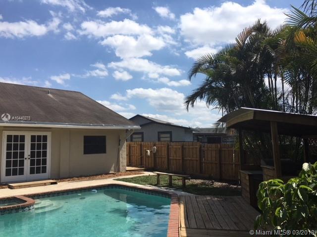 This three bedroom, two bath pool & spa home, sits on a cul de sac. It features an Italian front door, vaulted wood ceilings, Mexican tile and laminate floors, french doors, custom bathrooms, a utility room and a two car garage. The eat in kitchen has a cooking island and granite counters. The spacious family room has a wet bar, it allows for a possible forth bedroom and still provides ample space for the family. Your private back yard oasis offers plenty of room for entertaining, a covered grilling, covered lounging area and a side grassy area for family fun. Freshly painted inside and out. This house sits in the heart of Pembroke Pines, very close to the new City Center featuring restaurants, entertainment, shops and a Publix. Close proximity to schools and hospital. No association