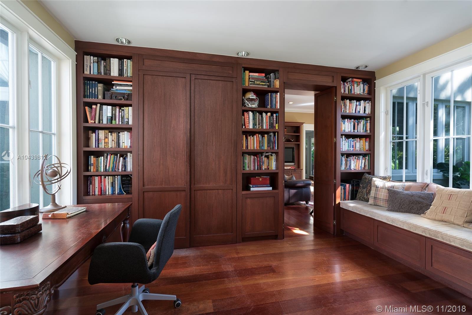 Plantation style estate on over an acre with storybook setting perfect for entertaining! Gated entry with circular driveway, vaulted ceiling foyer entry to formal dining/living rooms. Family room with custom built in and wood bar. Beautiful custom kitchen with SS appliances, walk in pantry and chef’s island. Ground floor master bedroom with sitting room/office. 4 bedrooms & second family room upstairs with balconies overlooking the picture perfect grounds. Expansive backyard with stone floors, lit basketball court, pool, and cabana bath. Includes 2 car garage, impact glass, wood floors throughout handcrafted custom millwork and Lutron lighting.