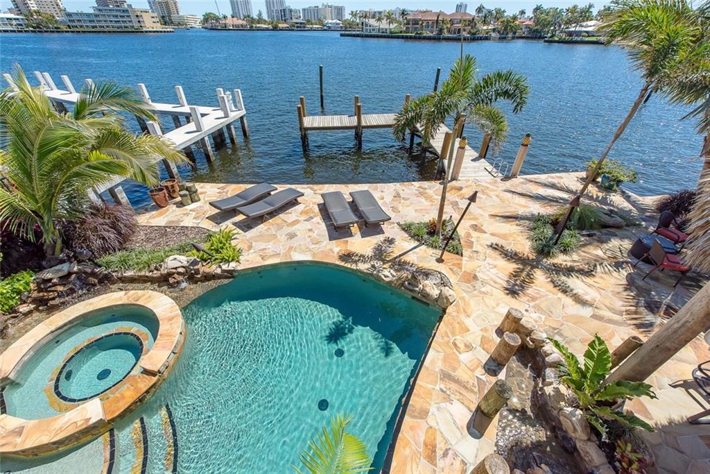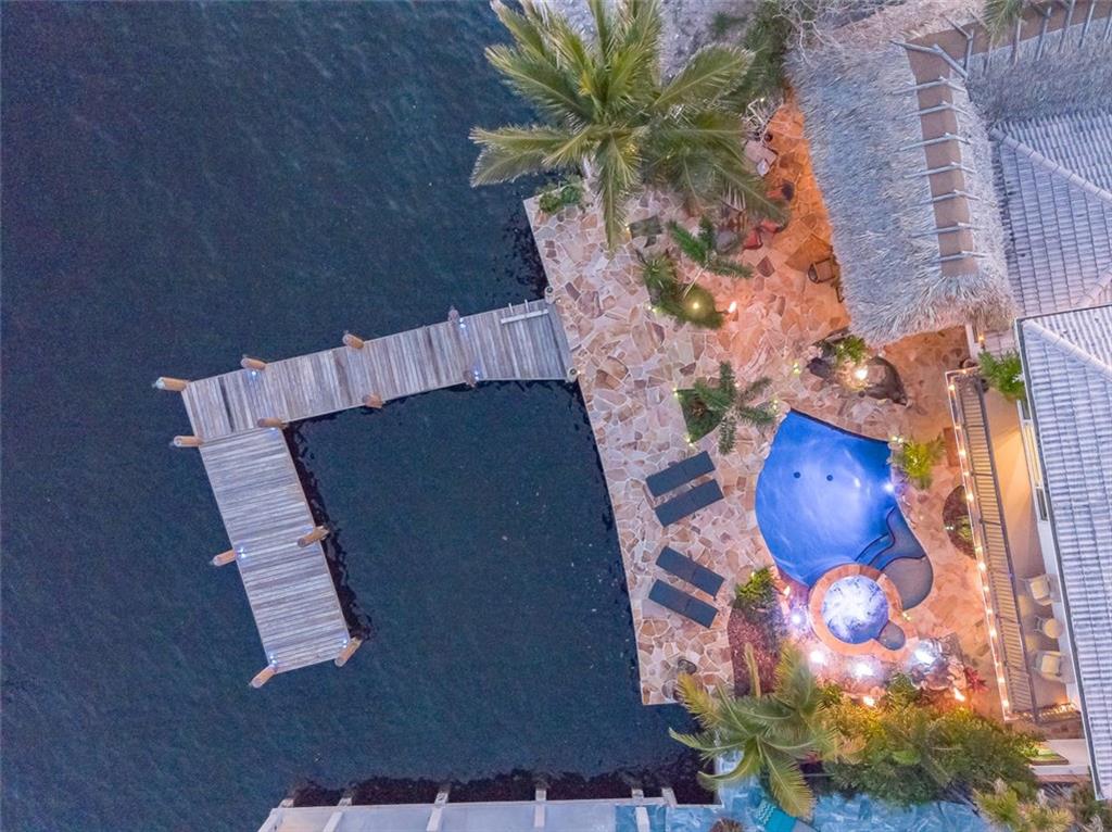 POSSIBLY THE BEST FOREVER VIEWS OF LAKE SANTA BARBARA, INTRACOASTAL, SUNRISES AND SUNSETS!!WALLS OF IMPACT SLIDING DOORS OVERLOOKING THE WATER!!BEATHTAKING LAGOON STYLE POOL,SPA &WATERFALL, LED LIGHTS,TIKI HUT, SUMMER KITCHEN SUROUNDED BY TROPICAL LUSCIOUS LANDSCAPING!TRULY A TROPICAL PARADISE!!FANTASTIC VIEWS FROM THE MOMENT YOU ENTER THIS UPDATED HOME, CHEFS KITCHEN W/NATURAL GAS, PANTRY, INT.LAUNDRY RM,&MUCH MORE! 2 BED.DOWN, 1UP. PIER DOCK FOR LARGE YACHT-TRULY A RARE FIND & LOWEST PRICE ON THE LAKE!